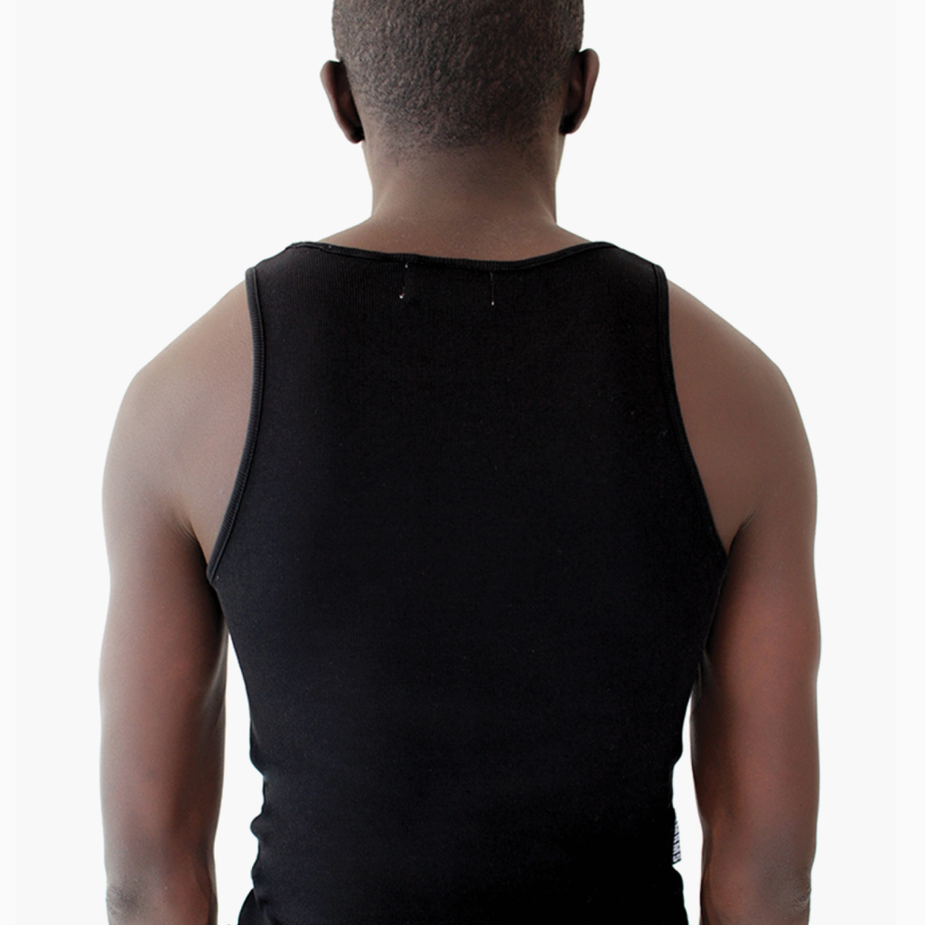 Unisex ribbed vest with punani graphic on front by MMMRMS Studio.