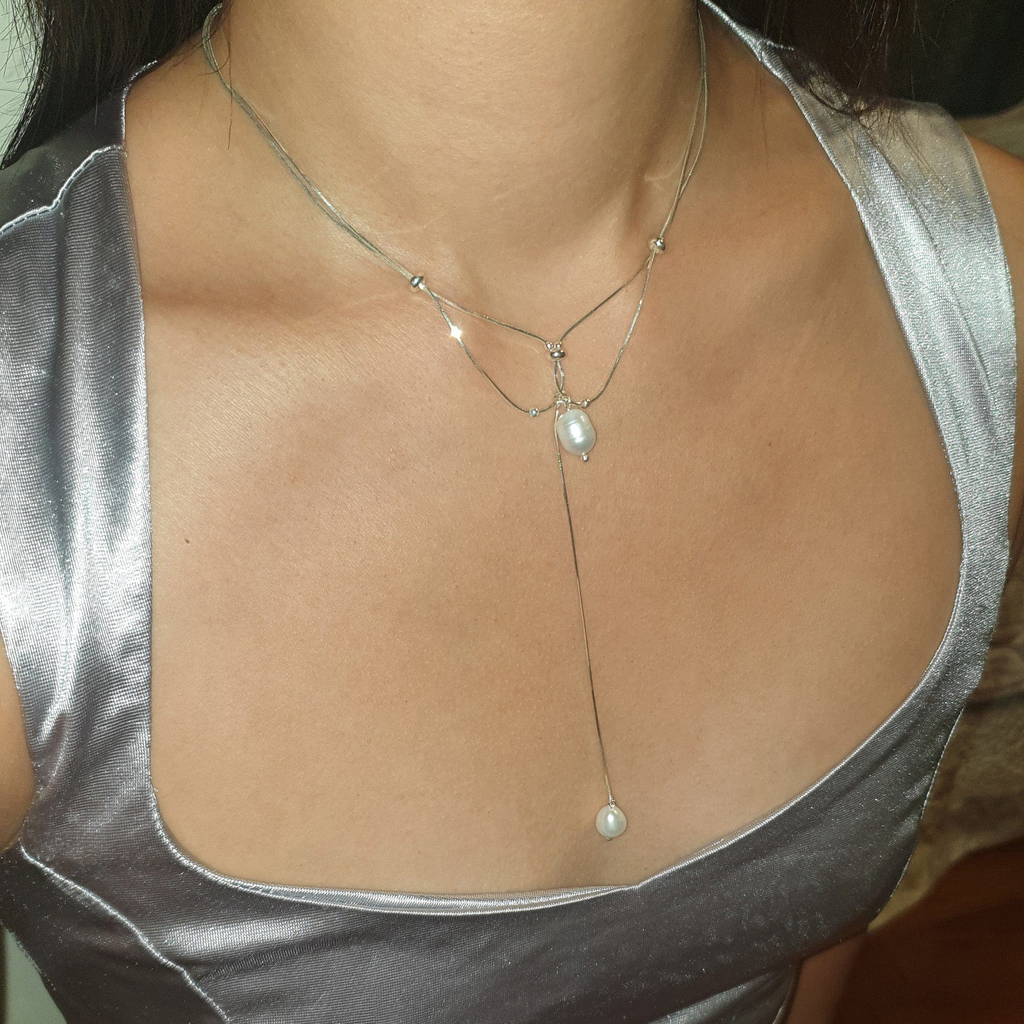 Please note that this necklace is made of a thin and delicate chain or pin. Handle it gently so as not to snap, especially when adjusting the balls.