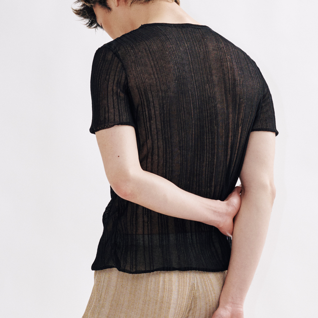 Mock interrupted rib t shirt, semi sheer in a soft mako cotton
