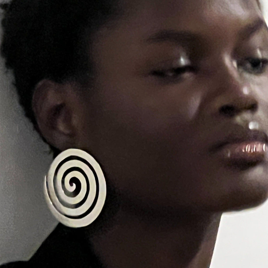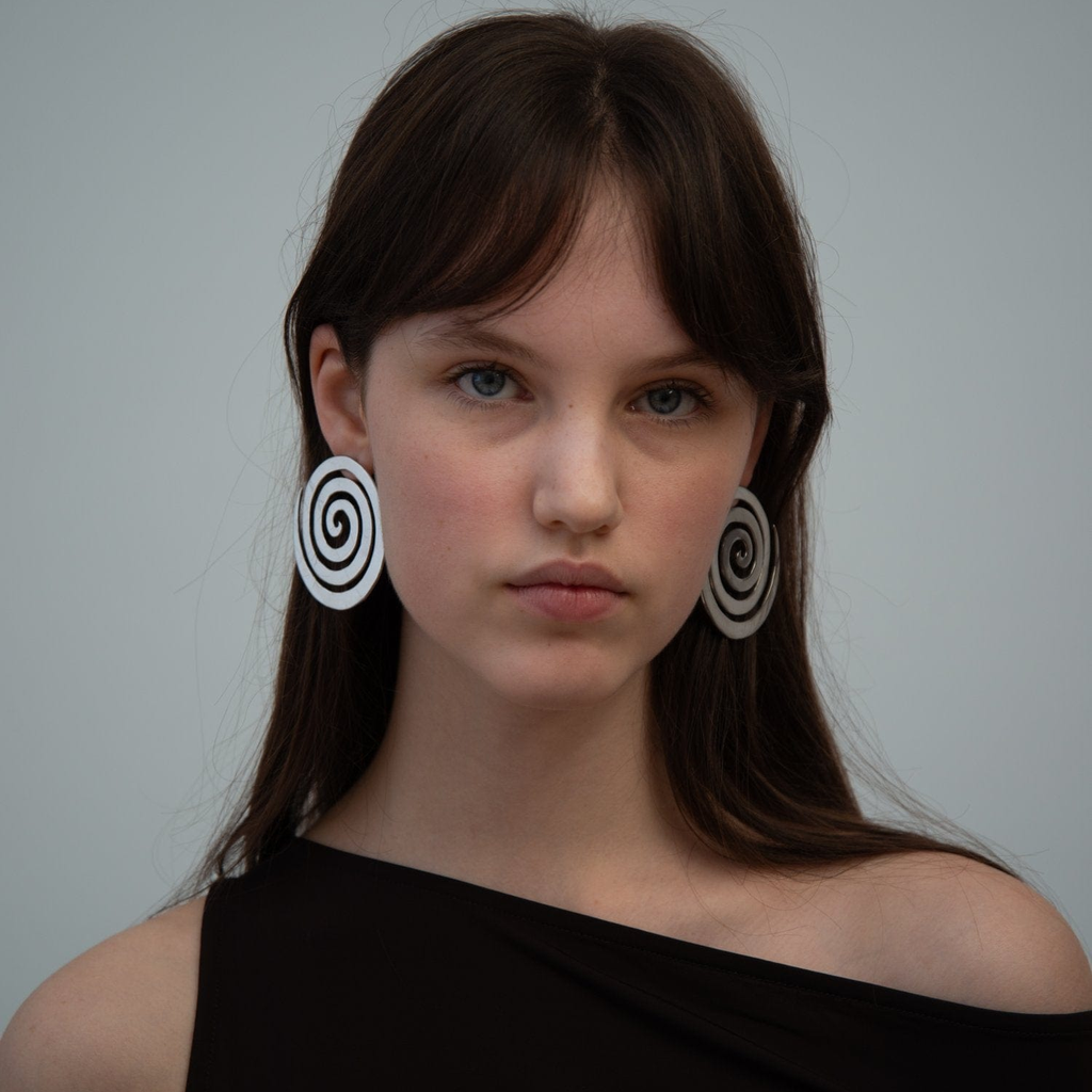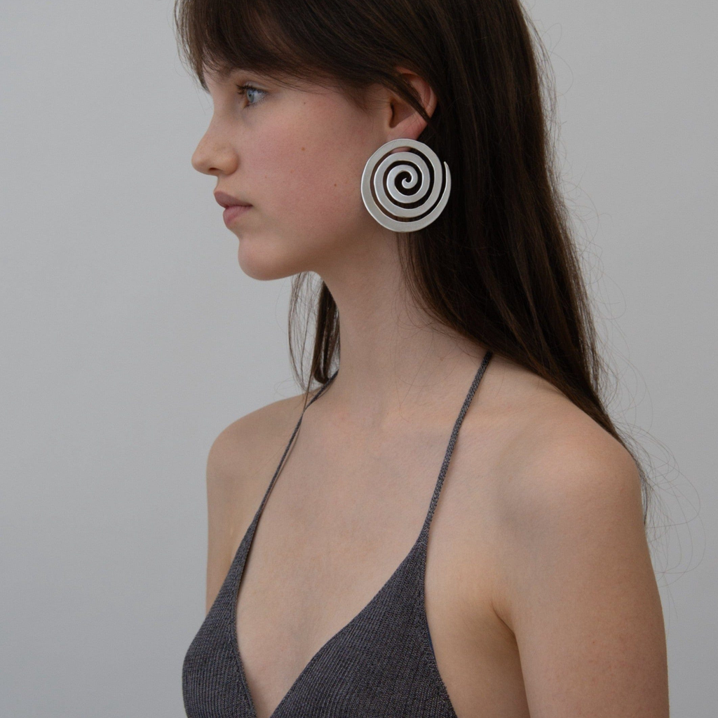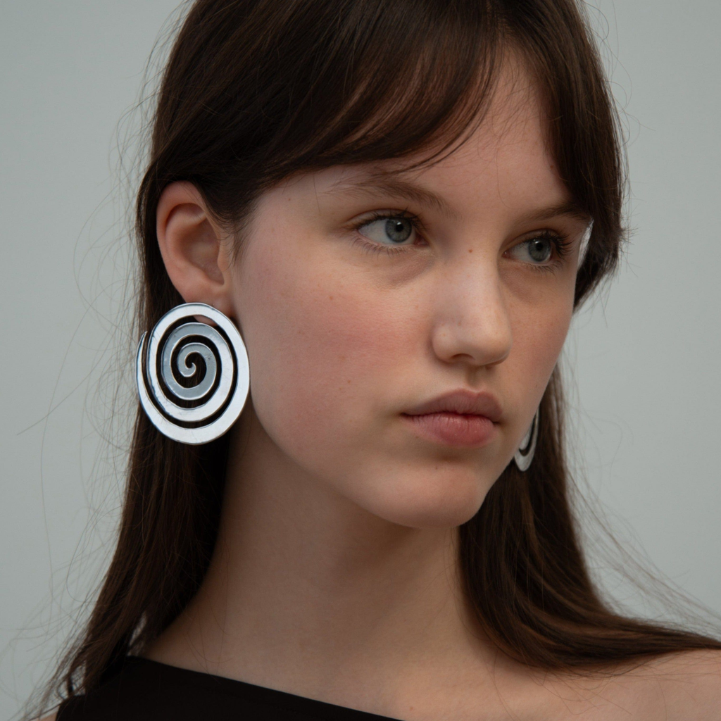 Pair Of Rhodium Coloured Brass Spiral Earrings