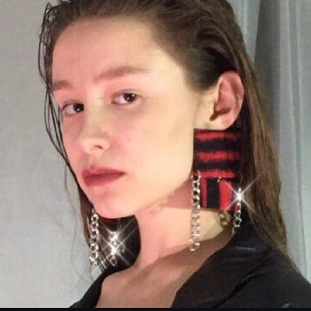 Material: cotton fabric, metal chains, rhodium plated stud