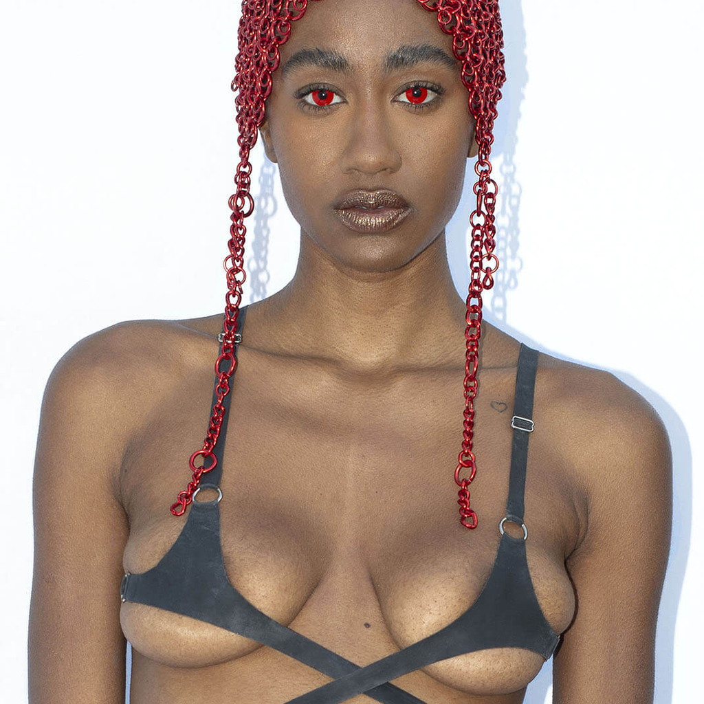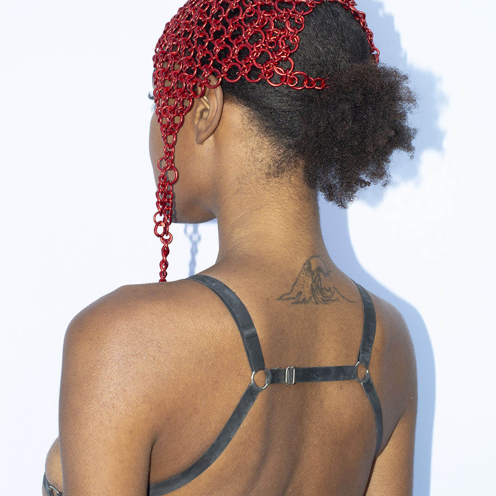 Jalaconda is a multidisciplinary artistic project, focused on the body. The LGBTQIA+ brand researches unconventional materials, such as latex, steel and natural Brazilian stones. They aim to discuss the place of manual work and personal adornment, knowing that clothes are fully political as they are from a country historically full of complexities.