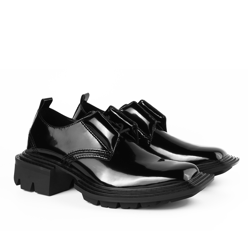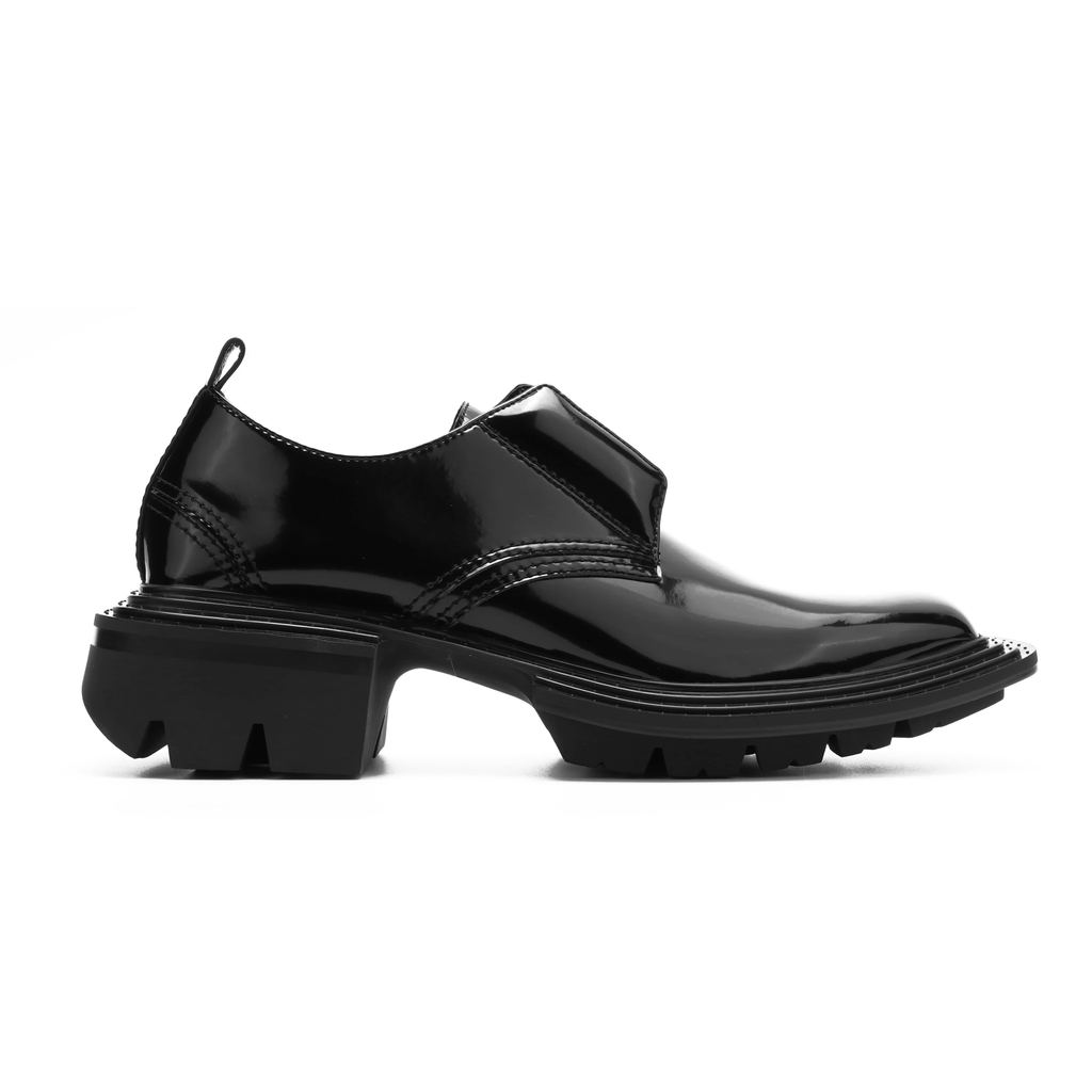Since its inception in 2019, untitlab® has embraced a radical approach to footwear and accessories. The Shanghai-founded, London-based label, led by the trio Tian Cai, Justin Zen, and Sans (Peng Xin), draws inspiration from formal wear, outdoor clothing, and BDSM attire, to challenge traditional classifications. Examples include hybrid boots and loafers with robust lug soles and avant-garde heels, all crafted from biodegradable vegan leather.