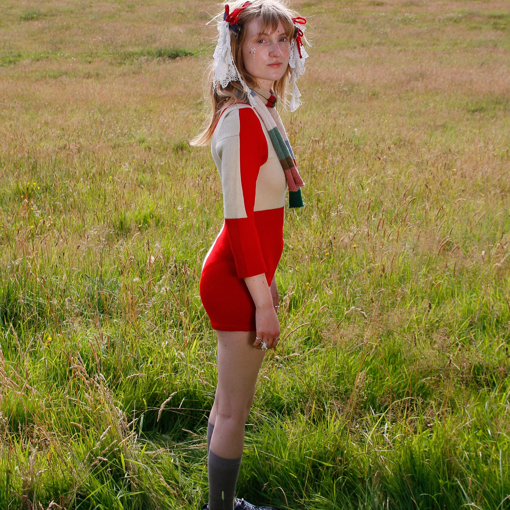 A one-off jumpsuit made from vintage damaged or shrunken wool jumpers and cardigans patchworked together. Invisible zip at the front. Custom colour ways and sizing can be made on request.