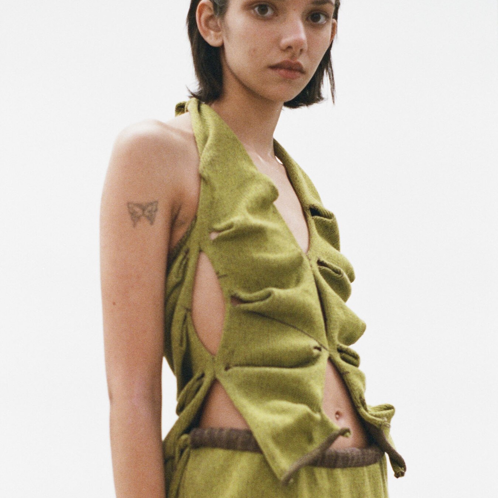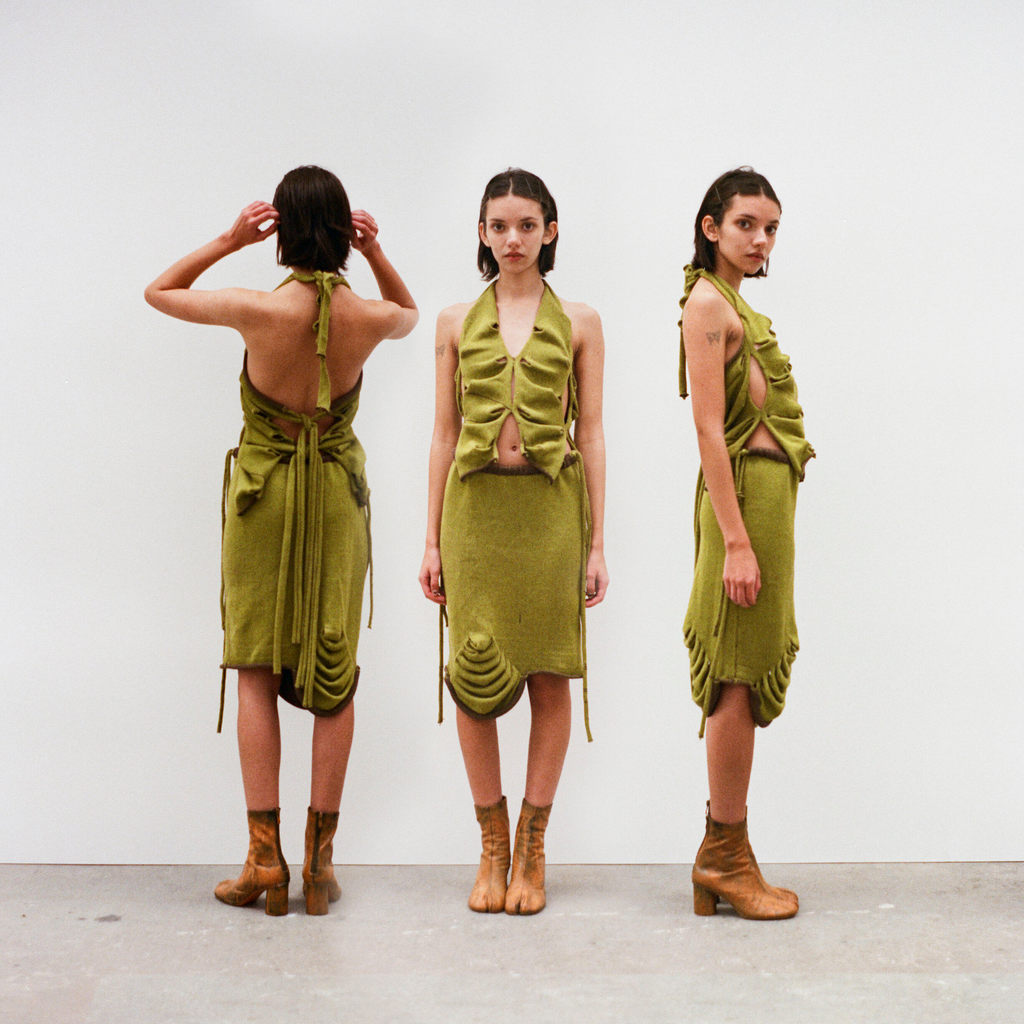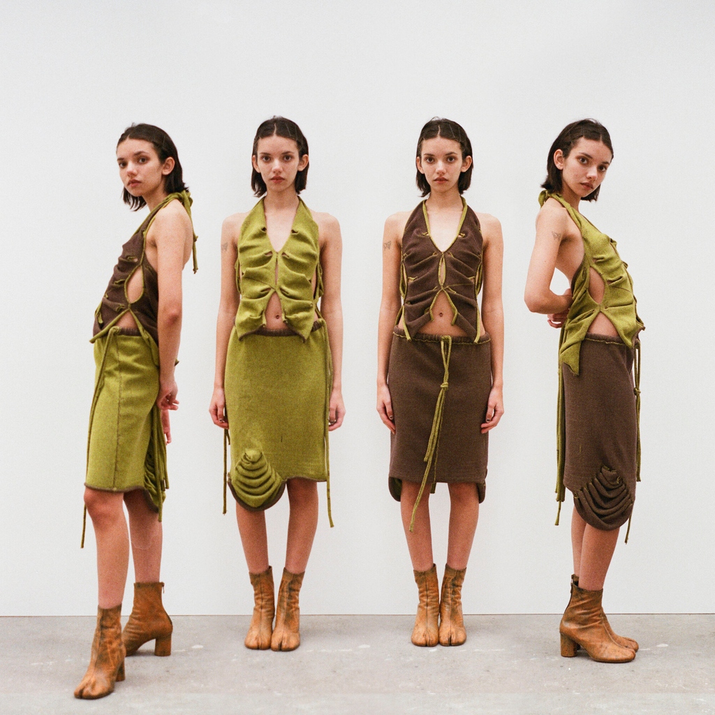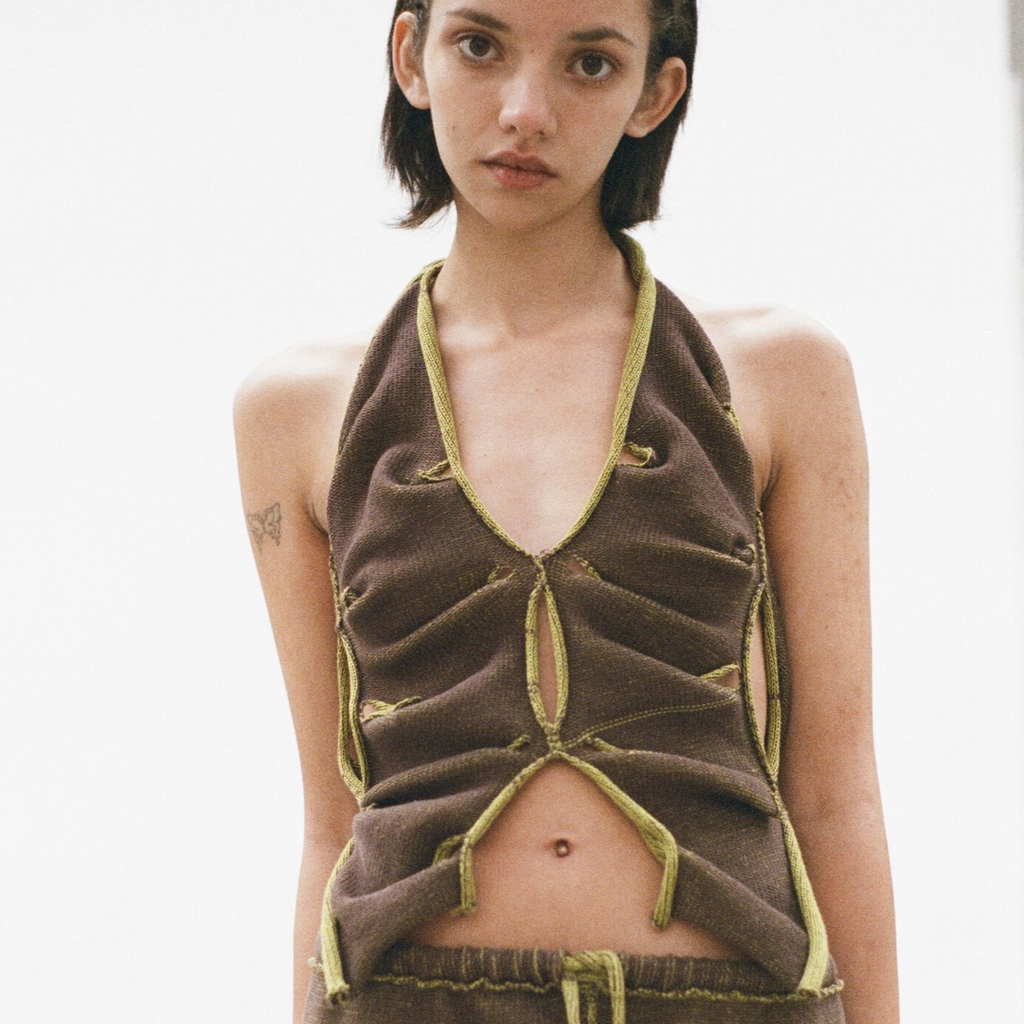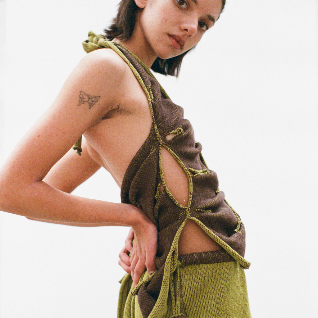 Whether it's visually inspired by her Puerto Rican roots or through a dynamic collaboration between designer and wearer, London-based Krystal Paniagua’s knitwear centres community. One-size-fits-most, her fluid and adaptable pieces mould themselves onto a wide range of body types.