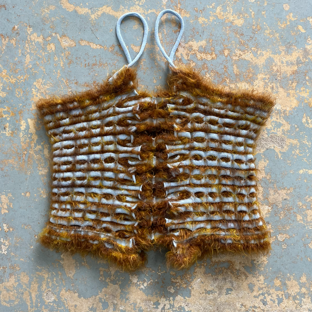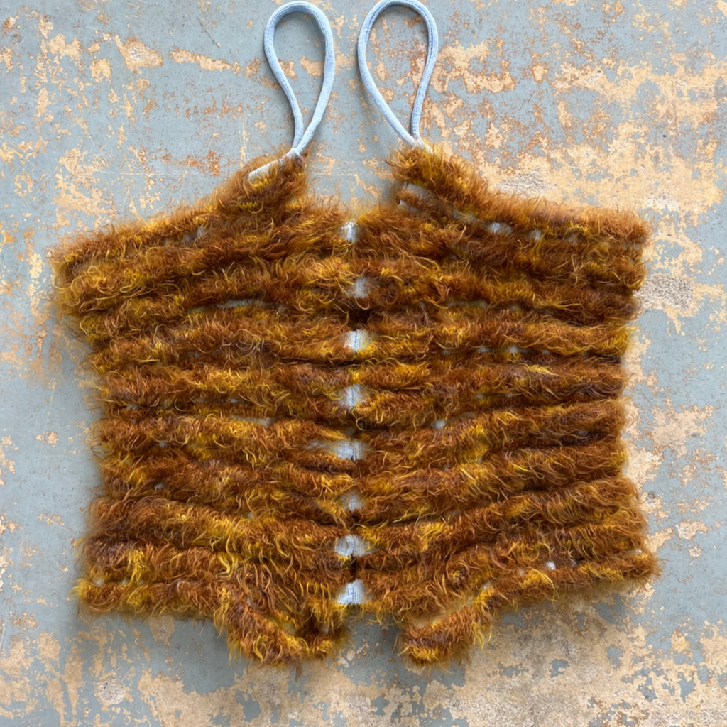 Material/fiber: Knitted elastane, mohair, and organic wool