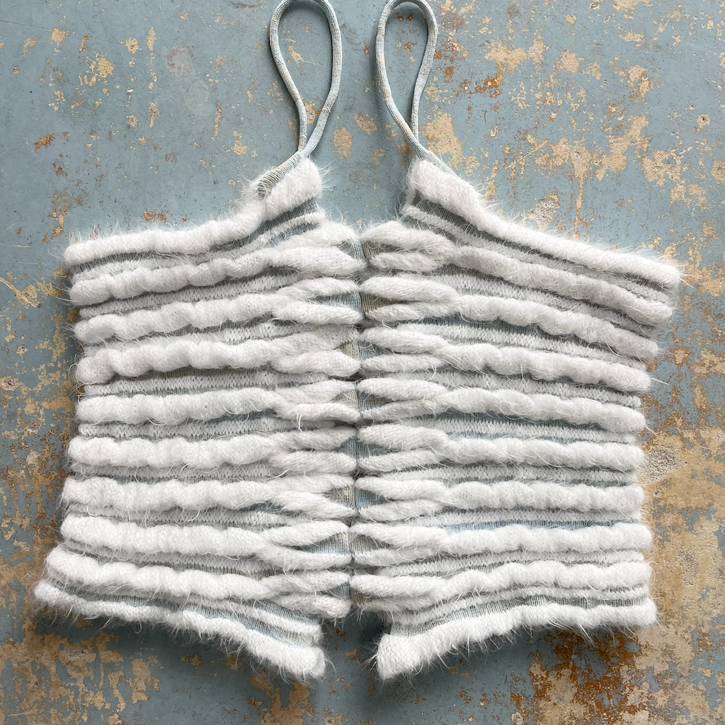 Material/fiber: Knitted elastane, mohair, and organic wool