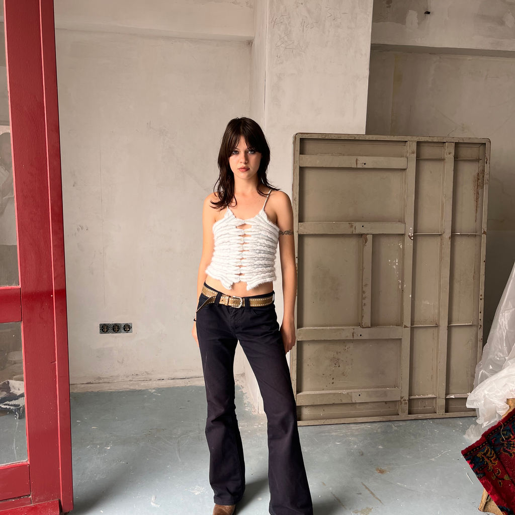 Material/fiber: Knitted elastane, mohair, and organic wool