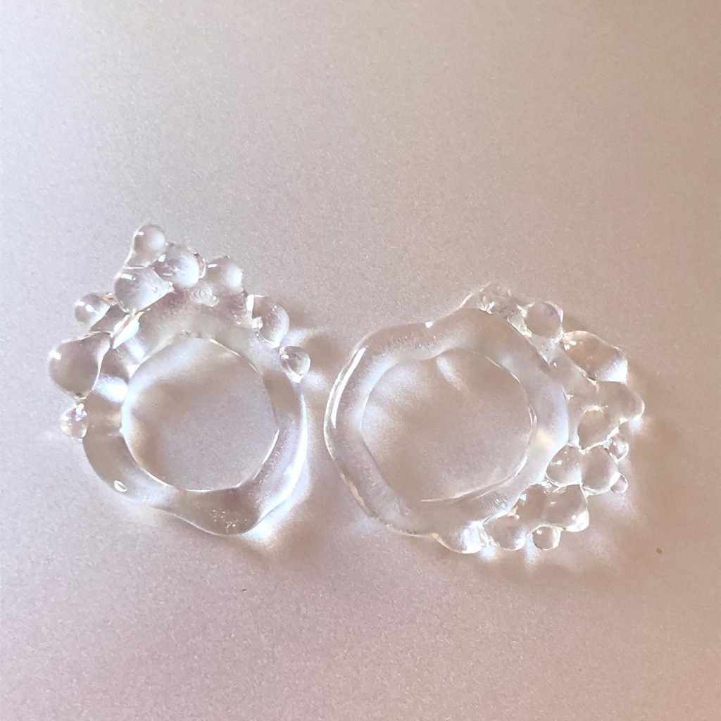 Chunky ring, transparent highly resistant borosilicate glass. Each piece is made by hand and one of a kind, so shape may vary.