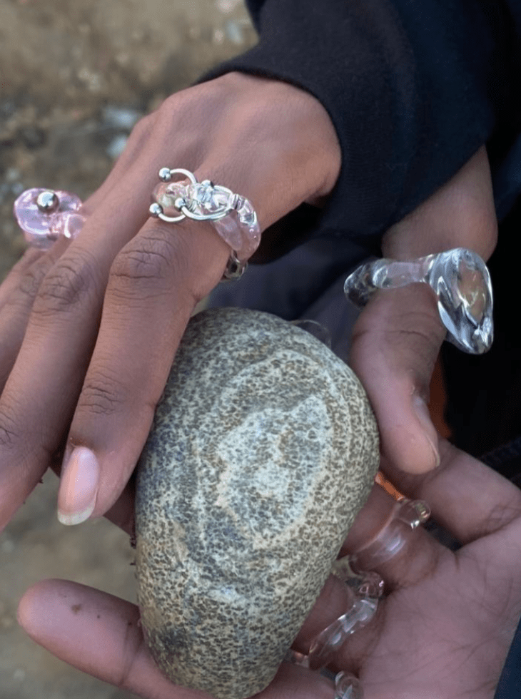 Magdalena Hart is a critical artist and interactive installation designer from UK / Uruguay. With Rain And Rivers, she created an ethereal collection of wearable sculptures forged using glass. Each piece has been made by hand and is one of a kind.