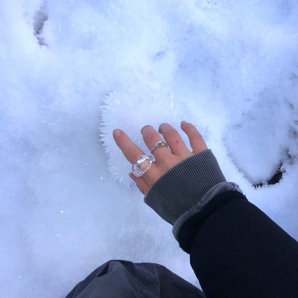Chunky ring, transparent highly resistant borosilicate glass. Each piece is made by hand and one of a kind, so shape may vary.