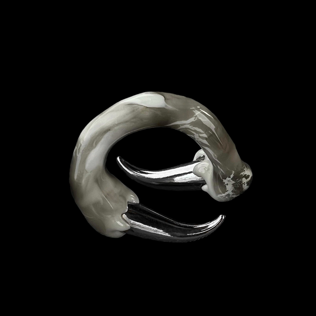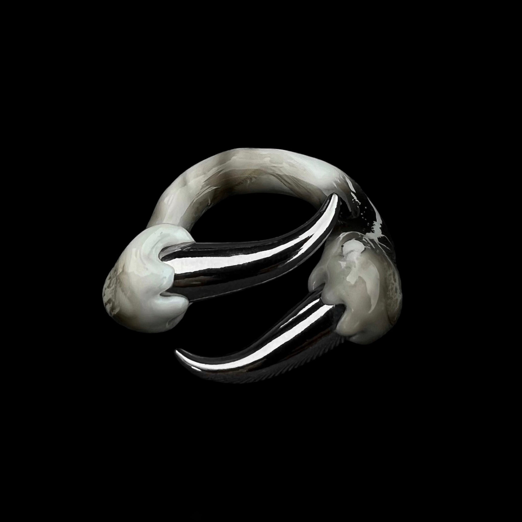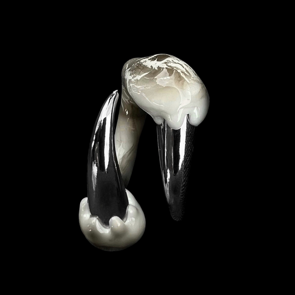 Ring The white part is flexible and the ring can be fixed on the finger Ring with adjustable size The black part is flexible and the ring is well fixed on the finger Expect minor changes in color - each copy is made and painted by hand to order Use wet wipe to clean