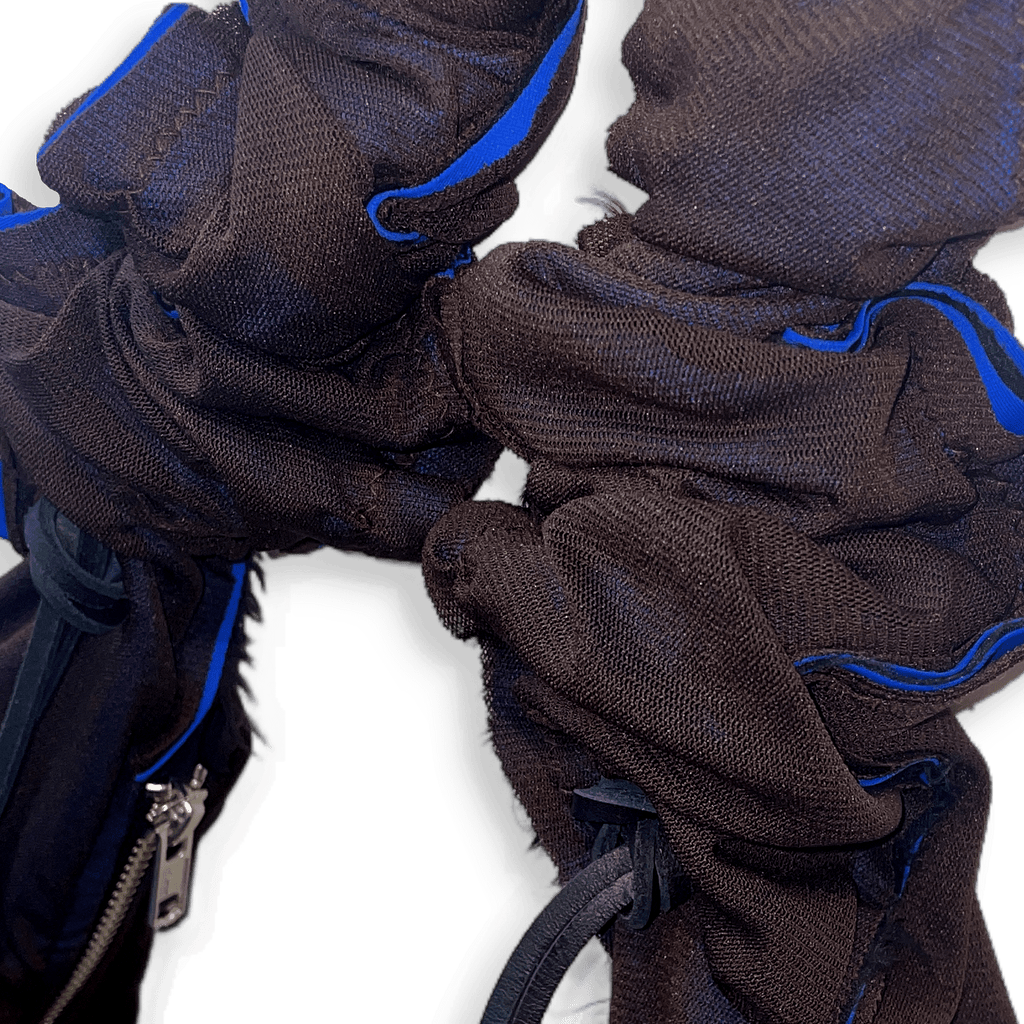 Morpho - Chocolate Brown Mesh, Cobalt Blue Lining.