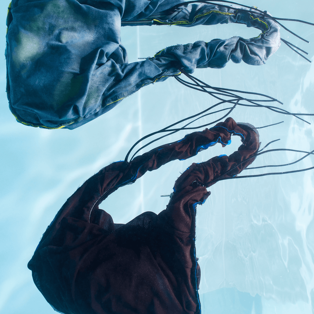 Based between Melbourne and Sydney, Emsah is a salad of textures, sounds, and sensations. Capsule 1 is a small collection that the designer made in her New York studio using a jumble of approaches: hand painting, bleaching, shirring, dyeing and screen-printing. Many pieces are adjustable or multifunctional, assigning ultimate freedom to the wearer.