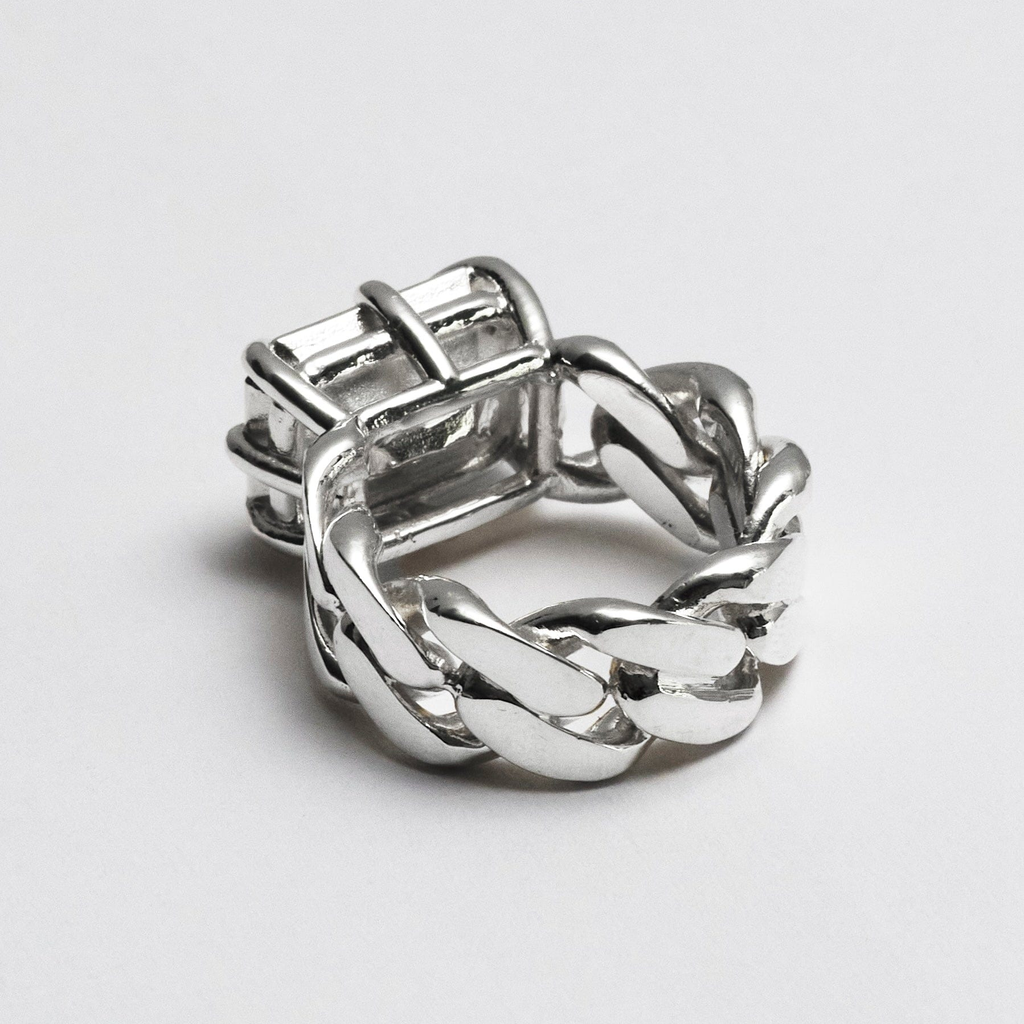 Big solid silver stone laced into MQT take on cuban chain. Each unique and polished to shine bright like diamonds.