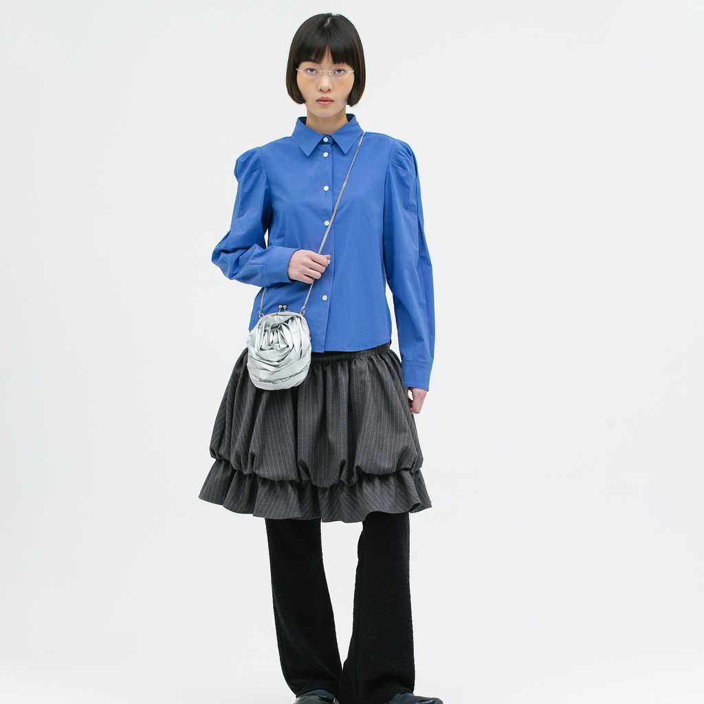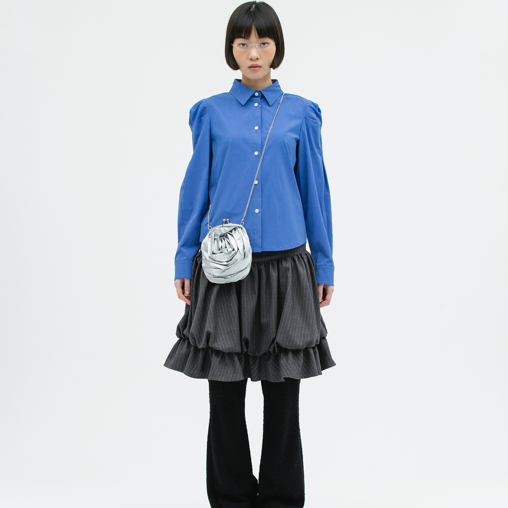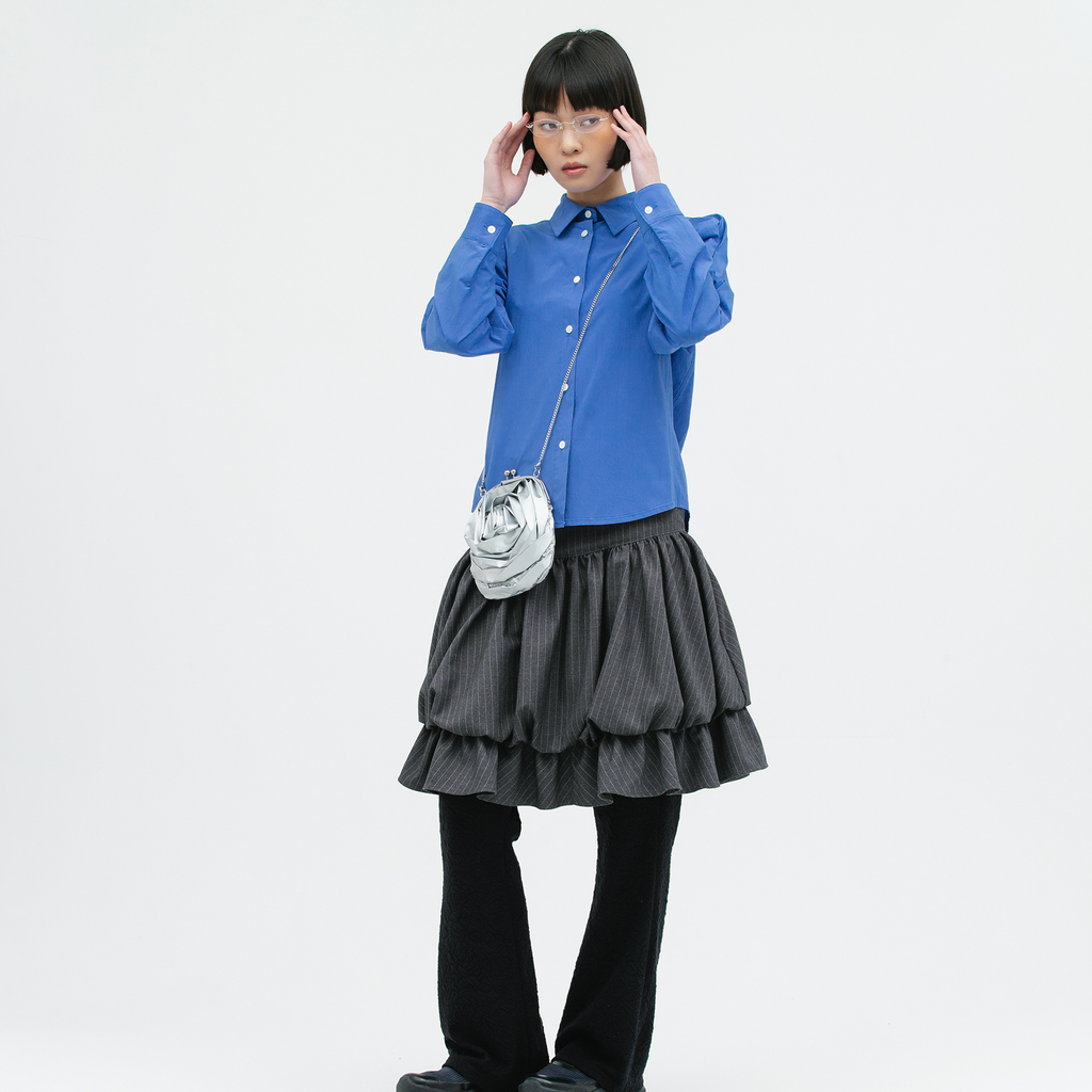 banding ruffle sha dot skirt - black