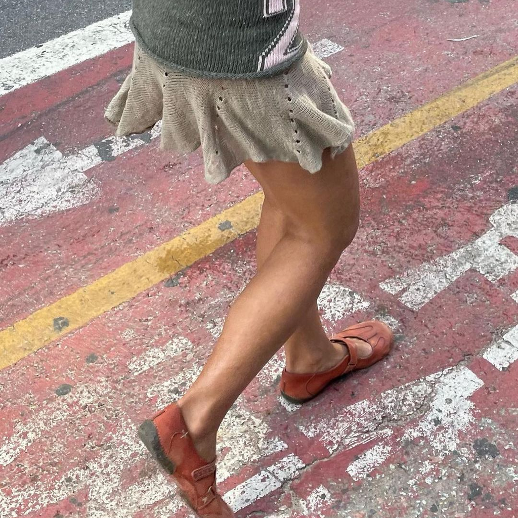 Each skirt is handmade in London with minimal waste using linen, cotton and wool yarns