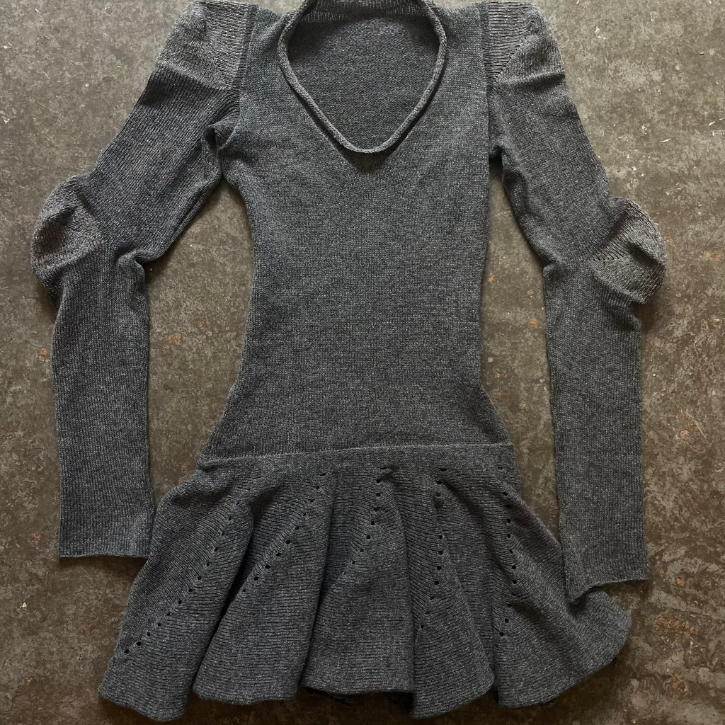 The lambswool mini dress by Lilies of the Valley features a drop waist, ruffle skirt and structured shoulder and elbow shaping.Size S, this item is stretchyThis piece was handmade in London with minimal waste.