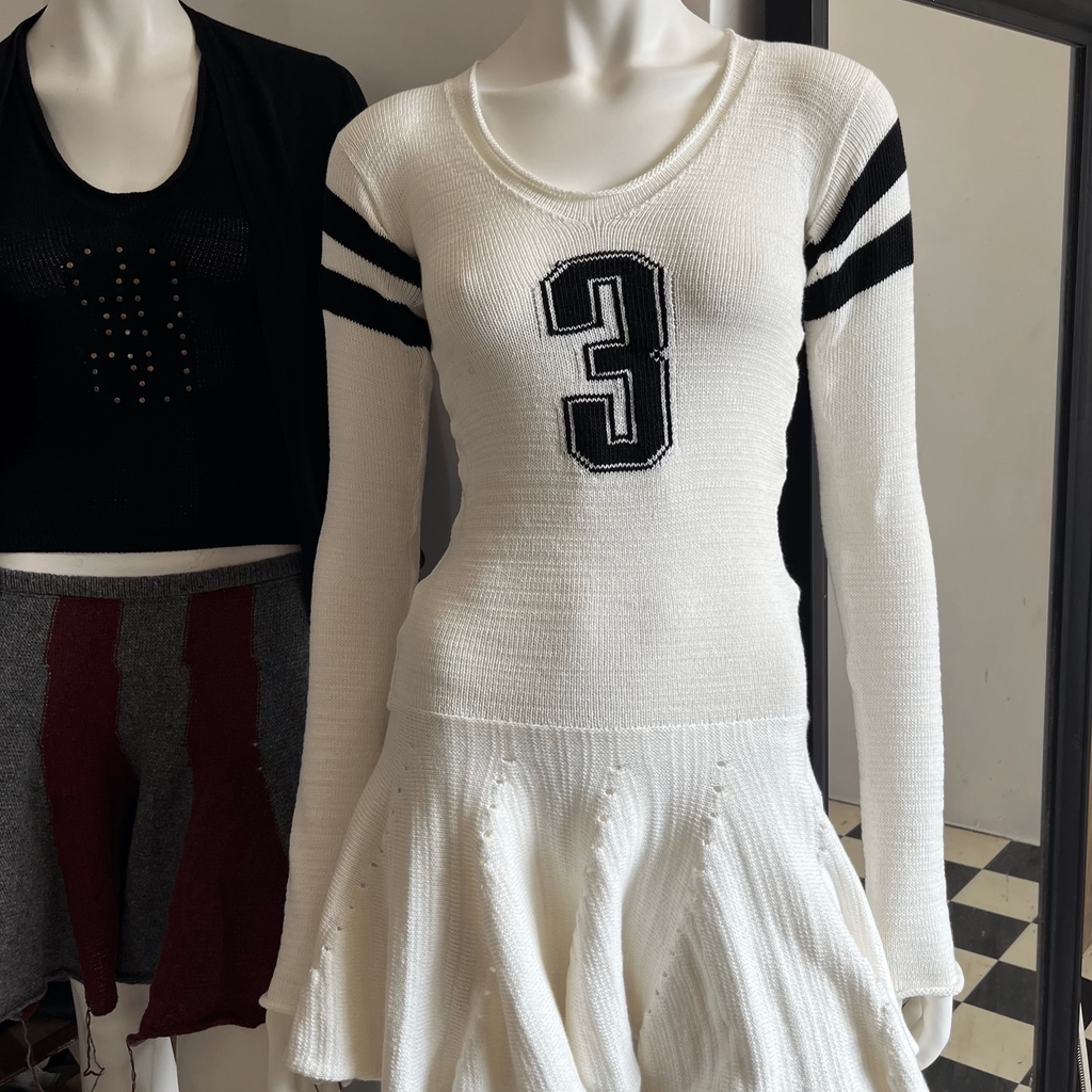 The cotton and viscose mini dress by Lilies of the Valley features a drop waist, ruffle skirt and number graphicSize XS, this item is stretchy.This piece was handmade in London with minimal waste.