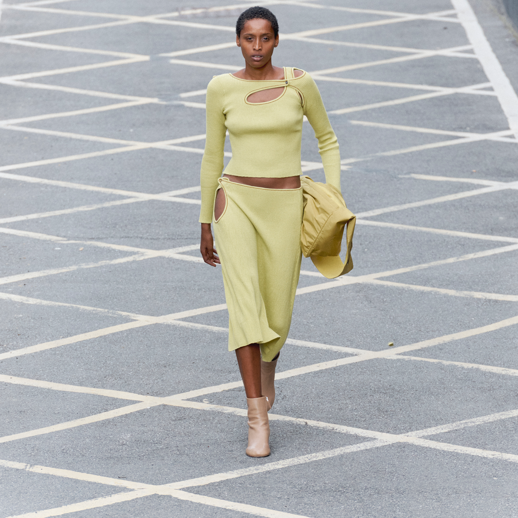 score knit midi skirt lime