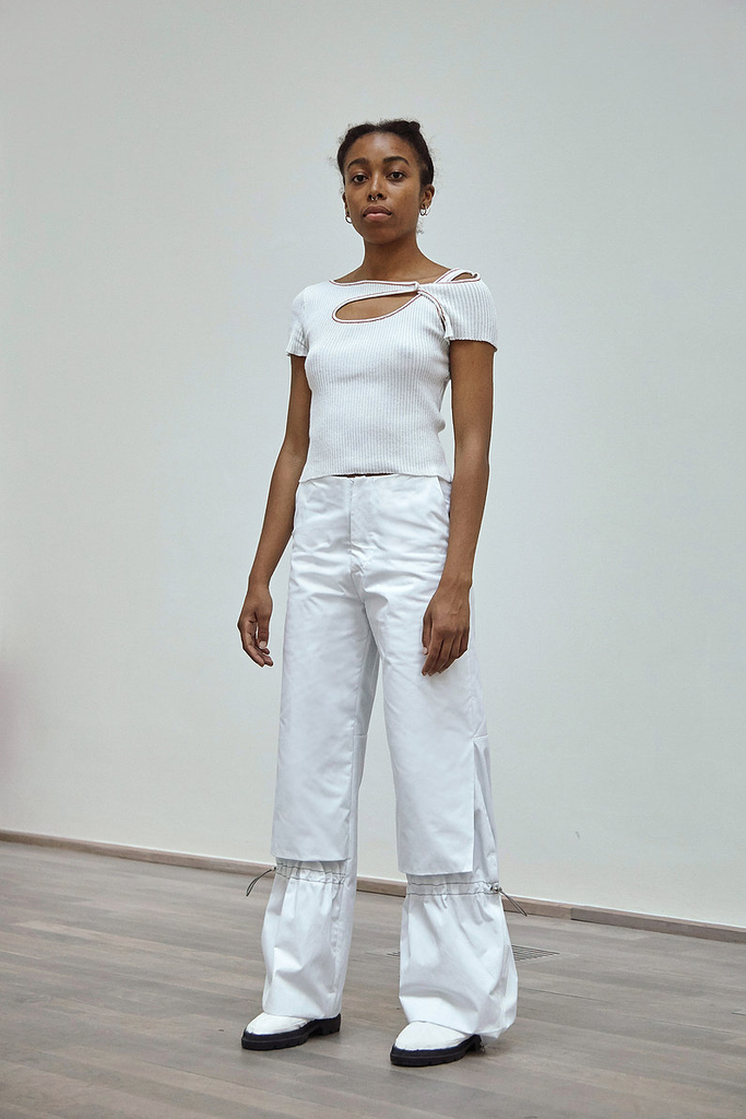 London-based designer René Scheibenbauer utilises a holistic approach to unisex tailoring, creating clothing that is both refined and supernal. René Scheibenbauer’s focus on innovative pattern cutting solutions elicits interactive details that create sculptural jackets, skirts, dresses, and shirts.