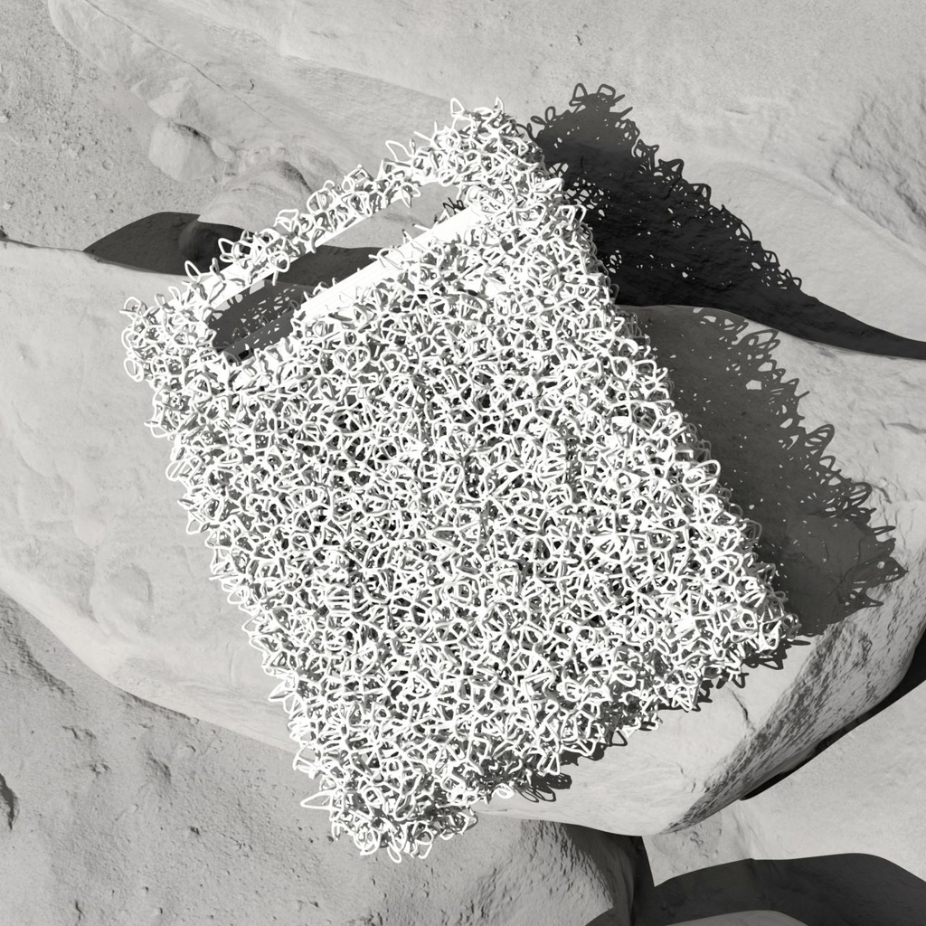 SCRY Chaos Handbag is an integrated 3D printing bag designed with a large number of complex and disordered chaotic mesh structure as design elements.