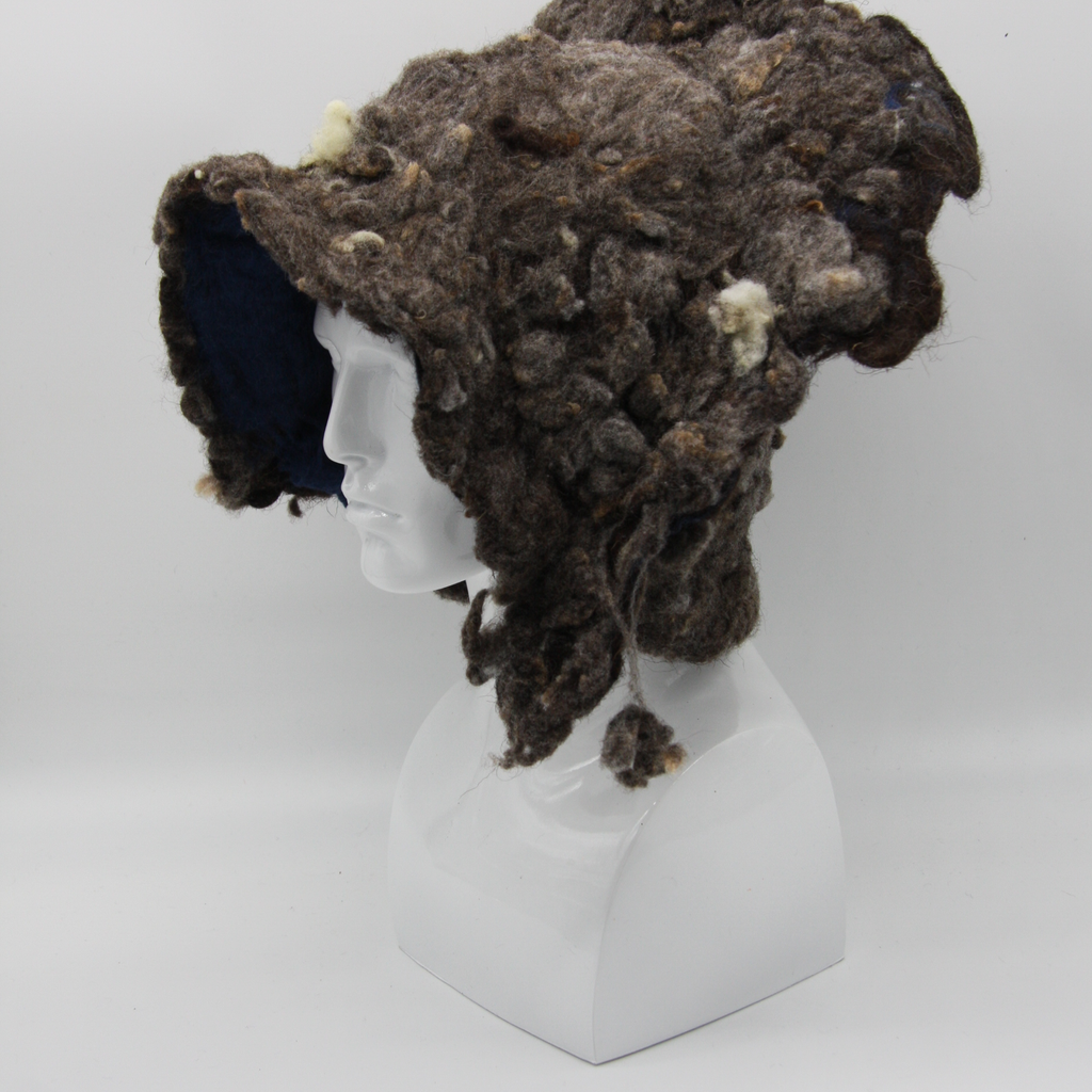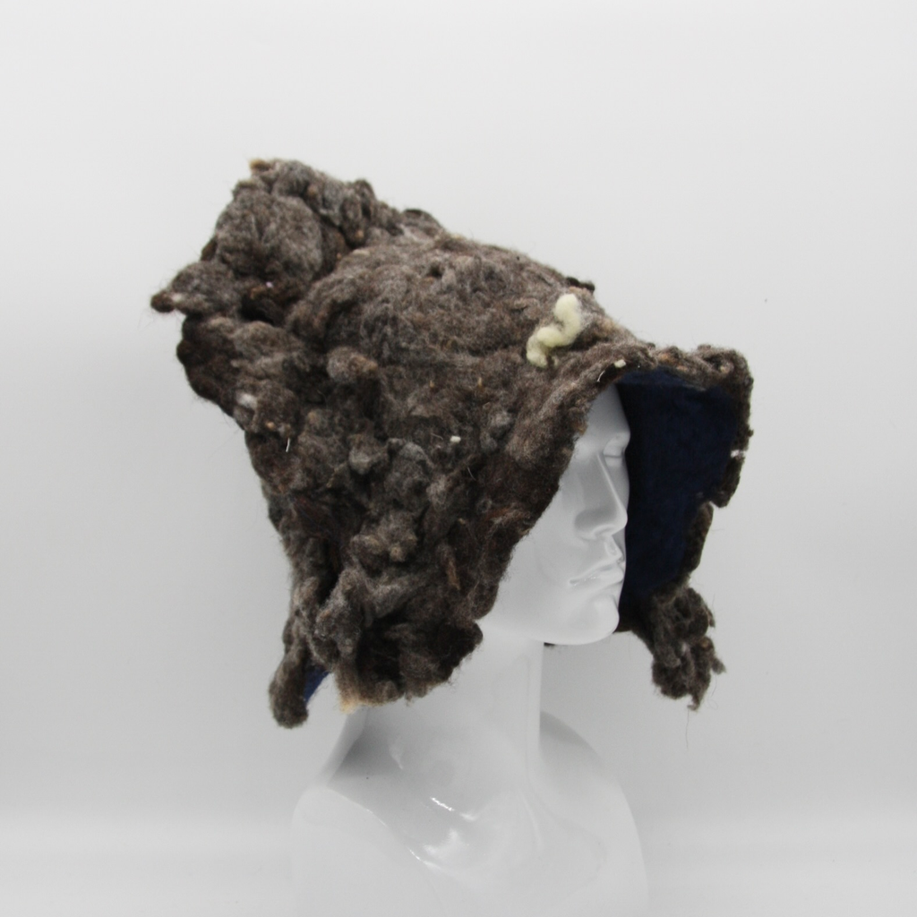 Hurtence is a London-based millinery and accessories brand by Madeline Thornalley. Hand crafted from mainly second hand fabrics and material, each piece encapsulates a theme on characters, personas, disguises and the lack thereof. Hurtence’s pieces are soft armoured ‘mental tuning devices’.