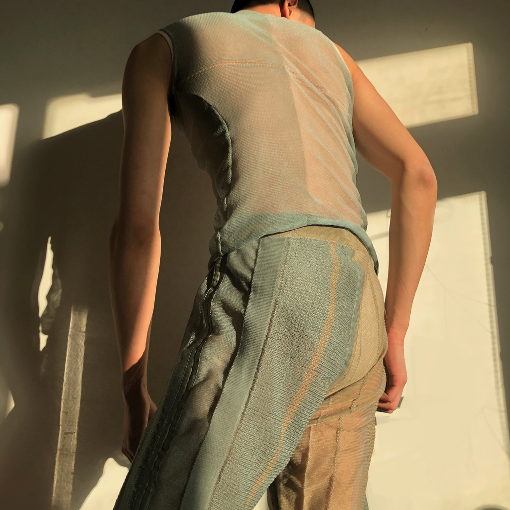 Khanh Brice Nguyen is a London based knitwear brand which offers a wardrobe of intimate and gender fluid garments. Inspired by contemporary dance, the label’s knits are draped directly onto the body, playfully enhancing the silhouette. Renowned for its signature 'drop stitch' top, each piece contours the wearer’s body in a new light.