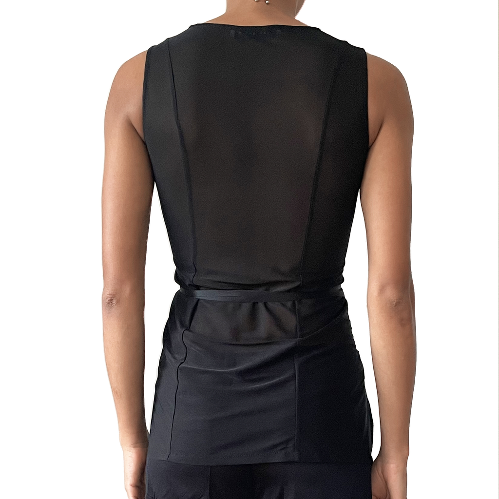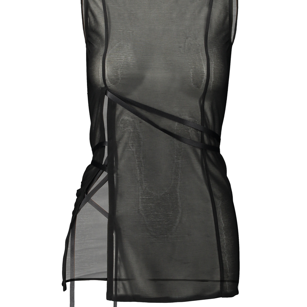 Jelly soft sheer vest top with laced elasticated ribbon on front slit opening