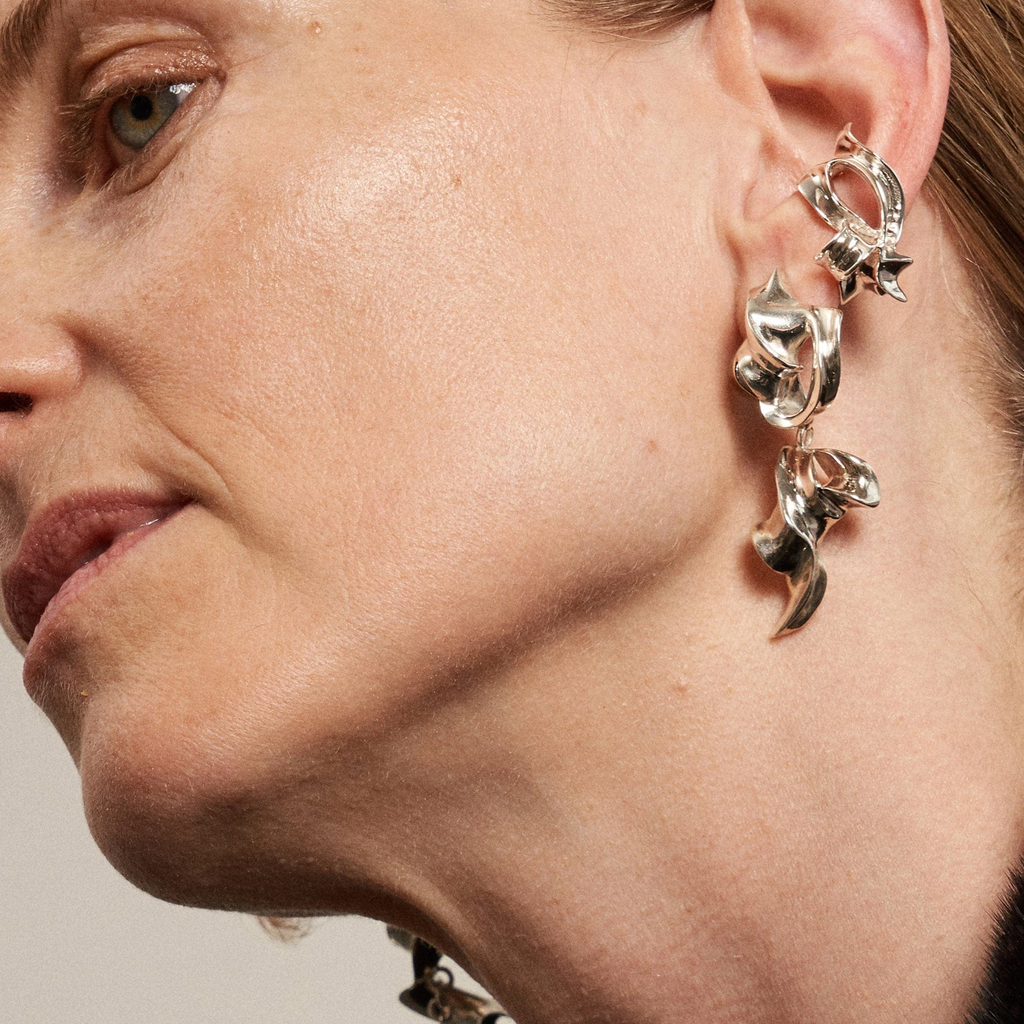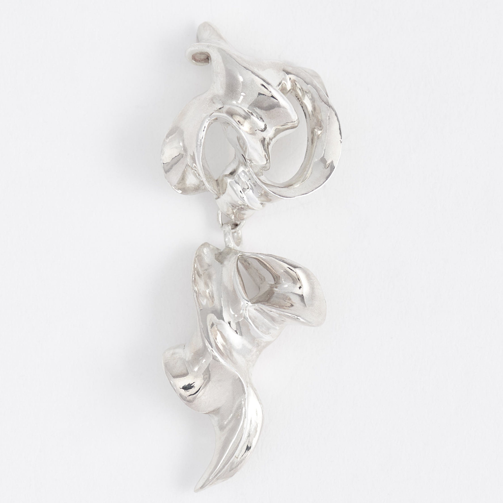 Shift Earring is sold as a single earring and features a dangly lower section. This piece is inspired by biomorphic and fluid abstract forms.