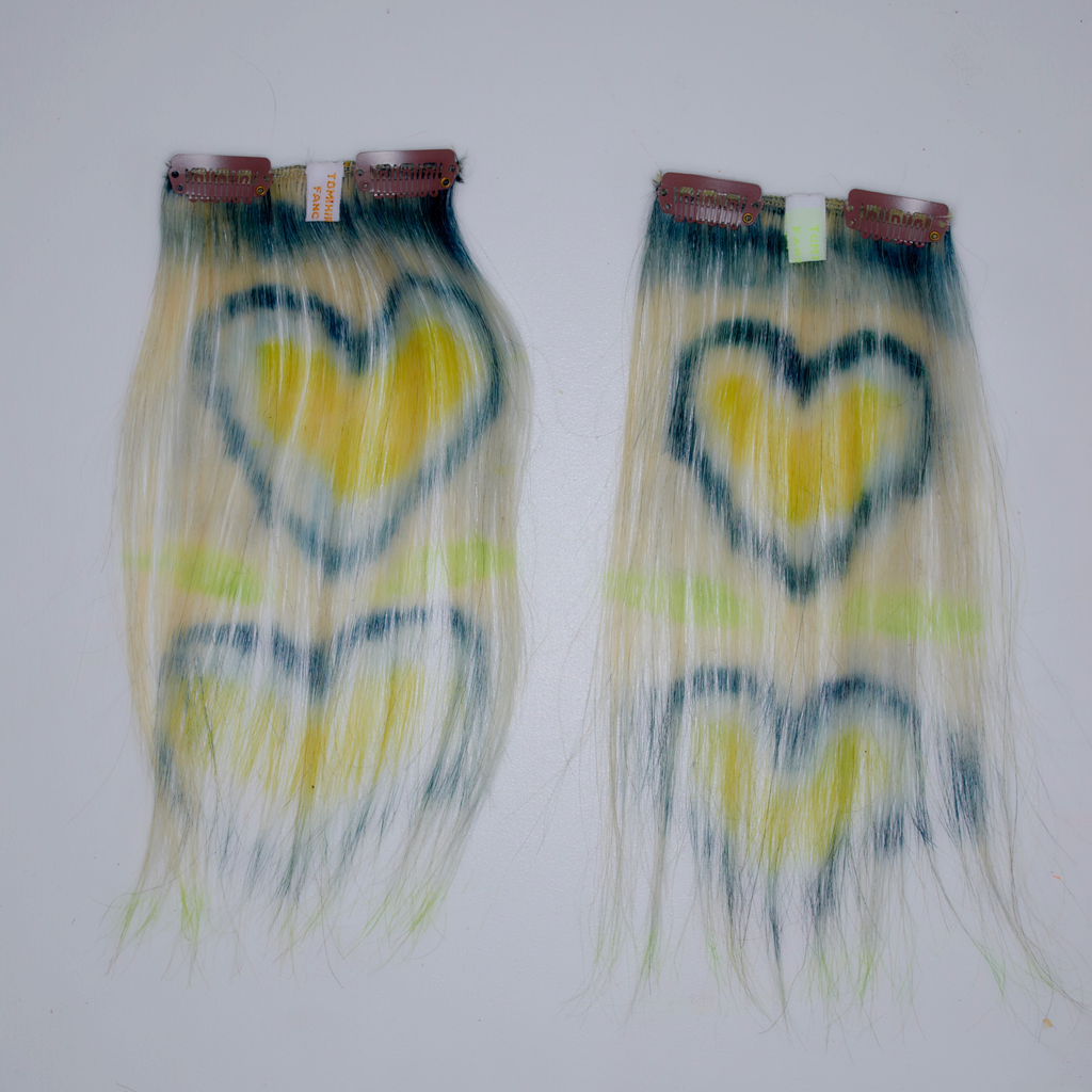 Materials: all hand-made, 100% Human hair, hand-dyed / clip-on