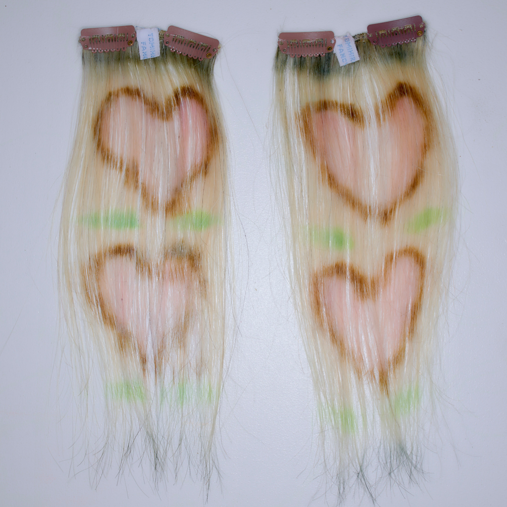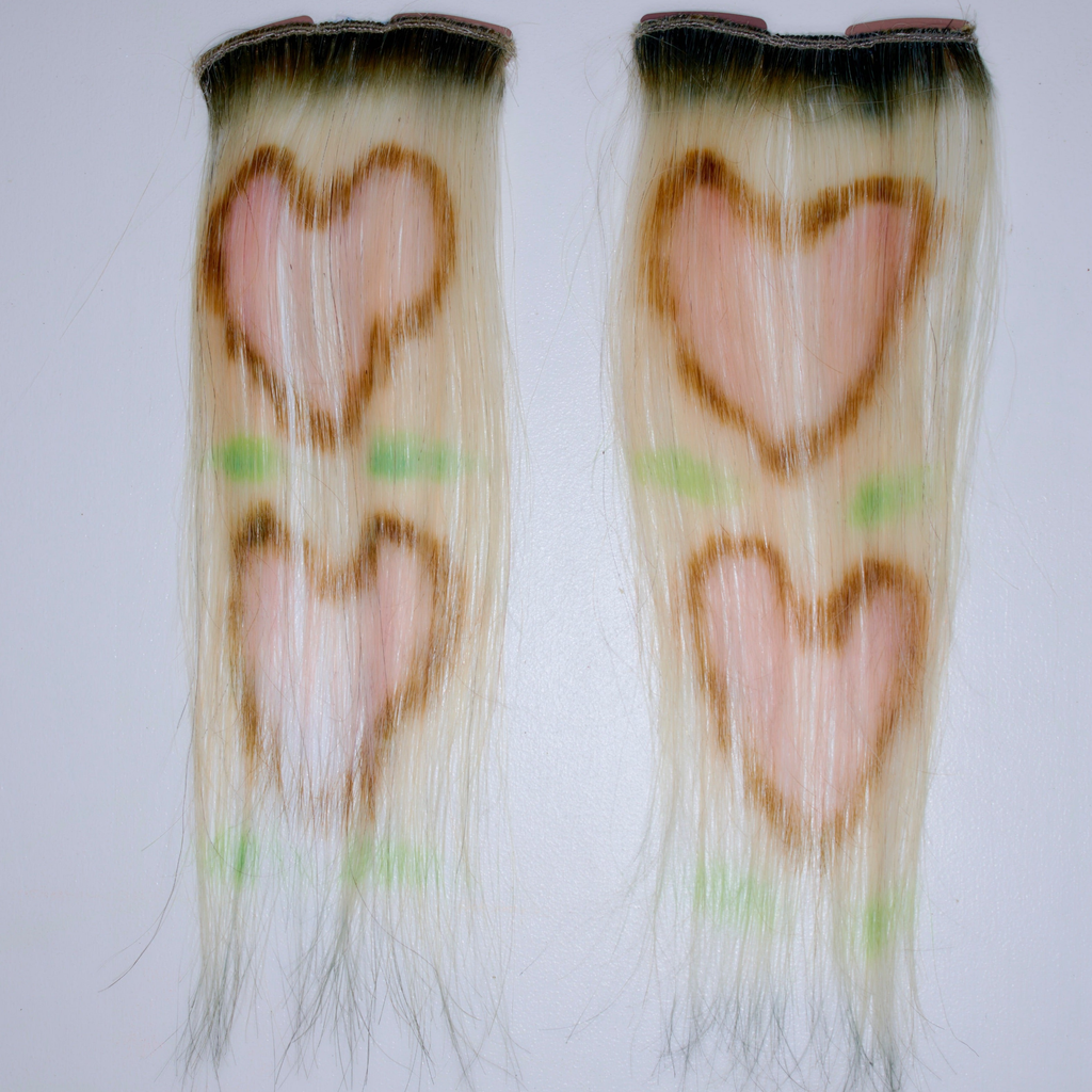 Materials: all hand-made, 100% Human hair, hand-dyed / clip-on