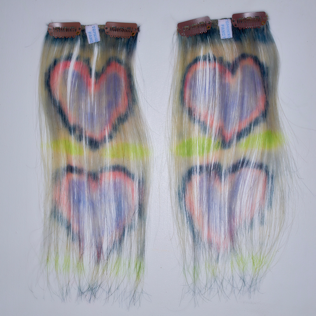 Materials: all hand-made, 100% Human hair, hand-dyed / clip-on