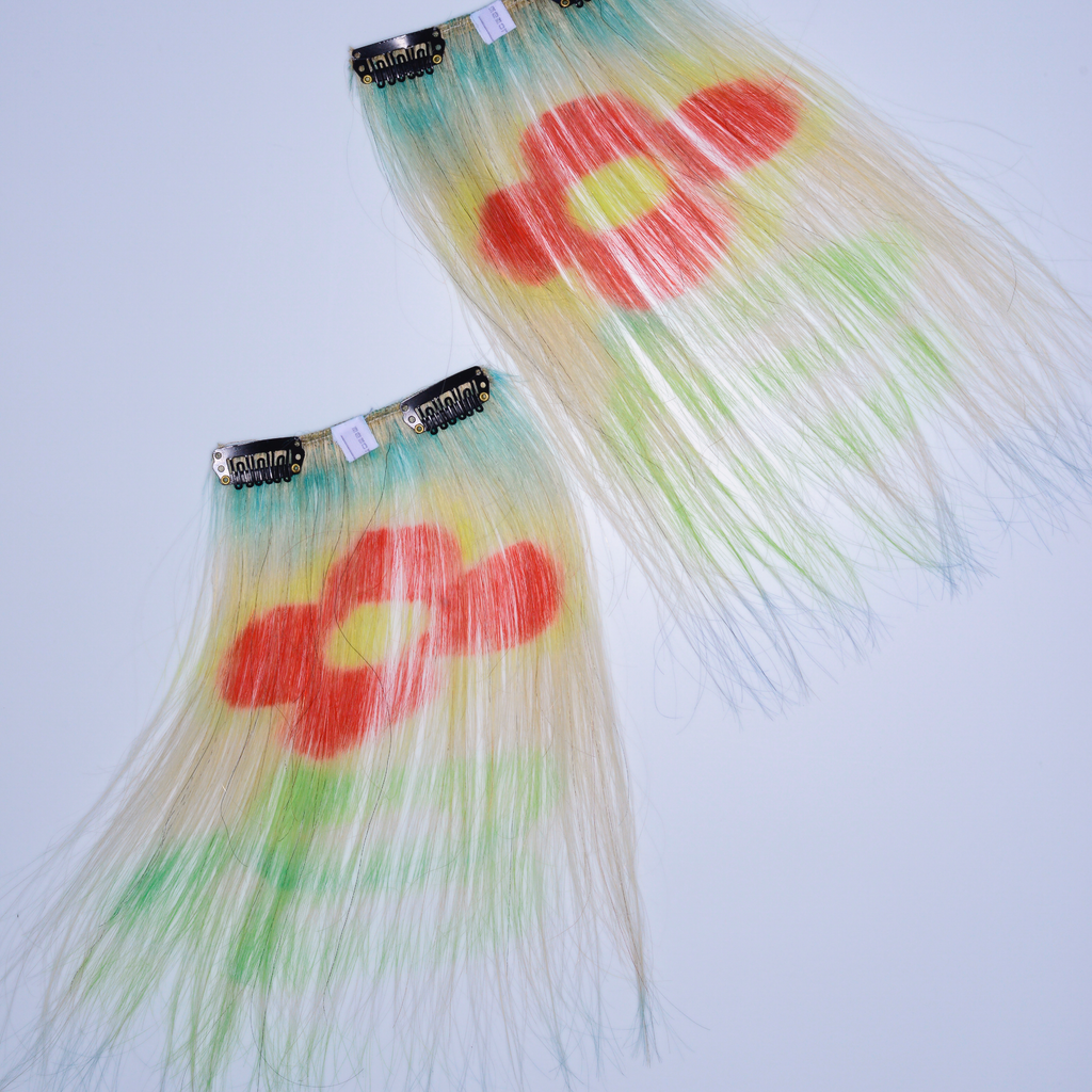 Materials: all hand-made, 100% Human hair, hand-dyed / clip-on