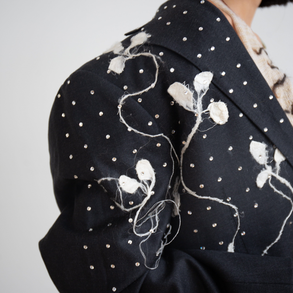 GRACE GUI is a Brooklyn farm to fashion based knitwear project by Grace Wang. GRACE GUI combines the Americana influences in her life, that had previously stunted her self acceptance, and combines them with her introspective resurgence of love for herself and her Chinese background. She solely sources from female independent farmers and artisans along with raising her own silkworms and angora rabbit in her Bushwick studio. The felting technique used to create fiberlinework is patented by Grace Gui LLC. as of May 2023. All items are knit and/or felted by hand, making each piece truly one of a kind.