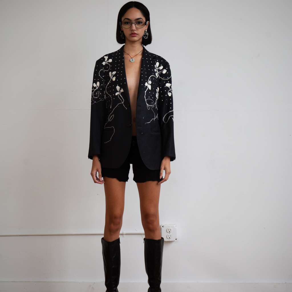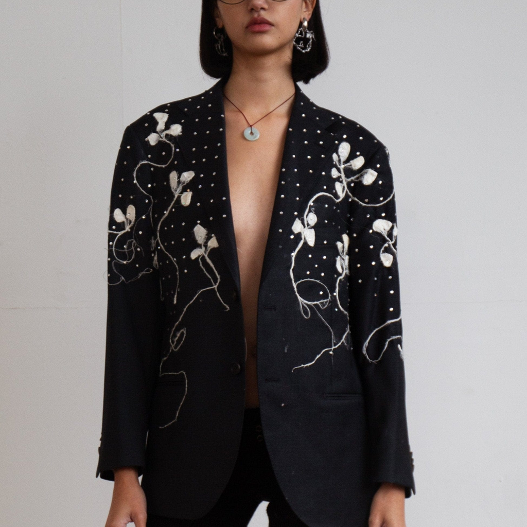 Silk Cocoon Blazer in Charcoal by GRACE GUI