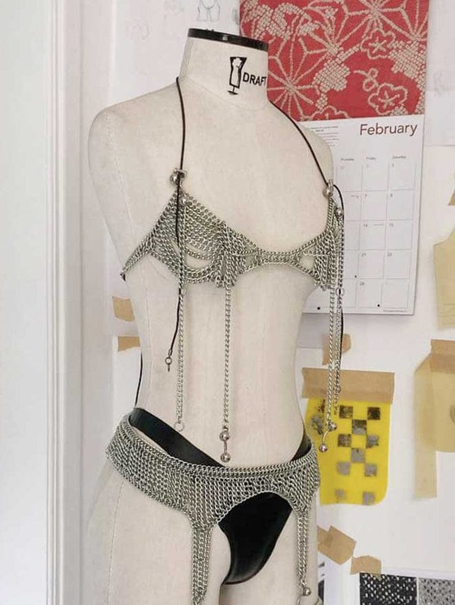 Jalaconda is a multidisciplinary artistic project, focused on the body. The LGBTQIA+ brand researches unconventional materials, such as latex, steel and natural Brazilian stones. They aim to discuss the place of manual work and personal adornment, knowing that clothes are fully political as they are from a country historically full of complexities.