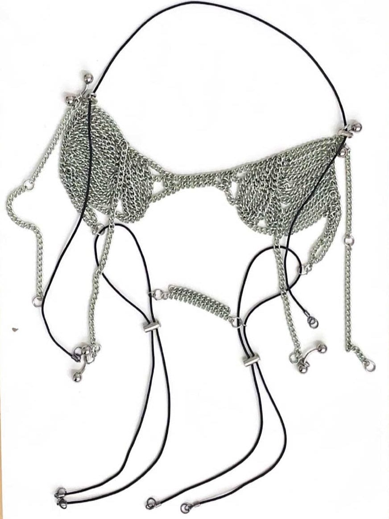 Adjustable metal top handmade in São Paulo. Made in aluminum chains so the piece is not heavy and is also very resistant. Adjustable by elastic. It can be washed with water and neutral soap if necessary.