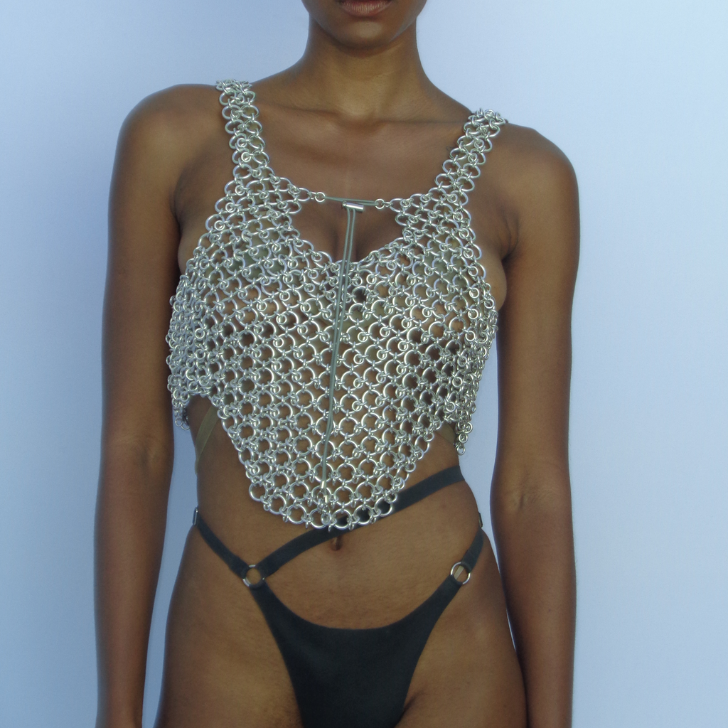 Metal vest handmade in São Paulo. All rings are aluminum so the piece is not too heavy and is also very resistant. Adjustable by elastic. It can be washed with water and neutral soap if necessary.