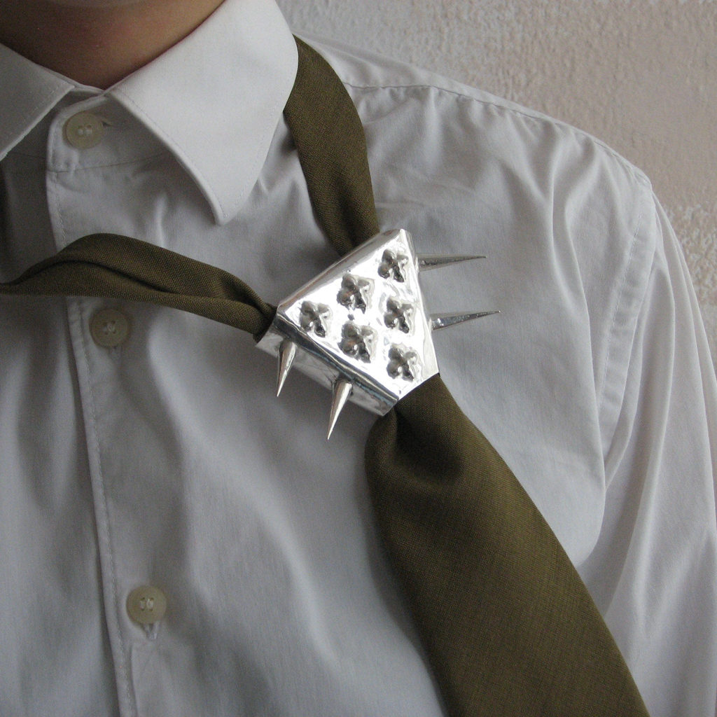 Securely attaches to any tie. High shine finish Material: Silver-plated brass body