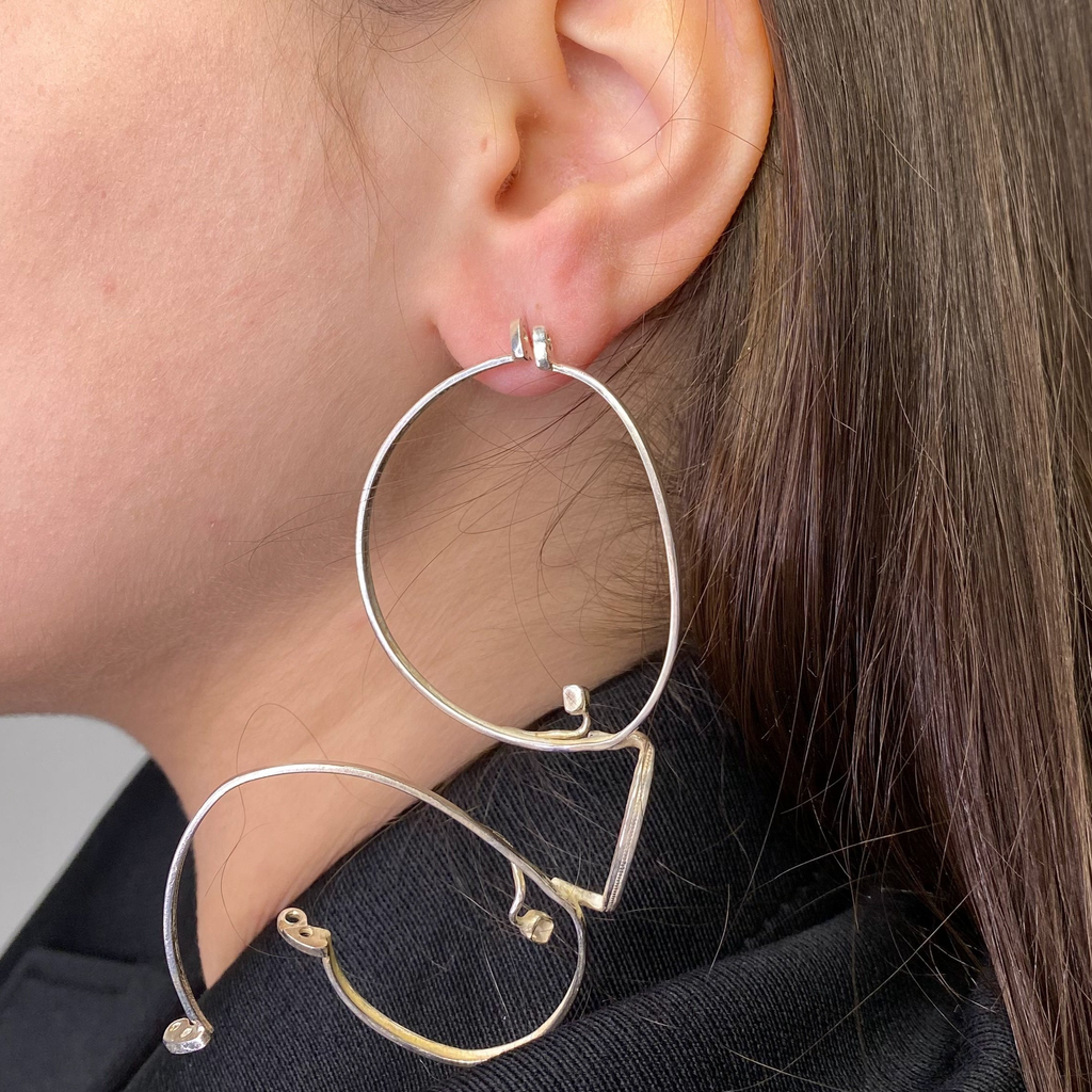 single big silver glasses earring 2