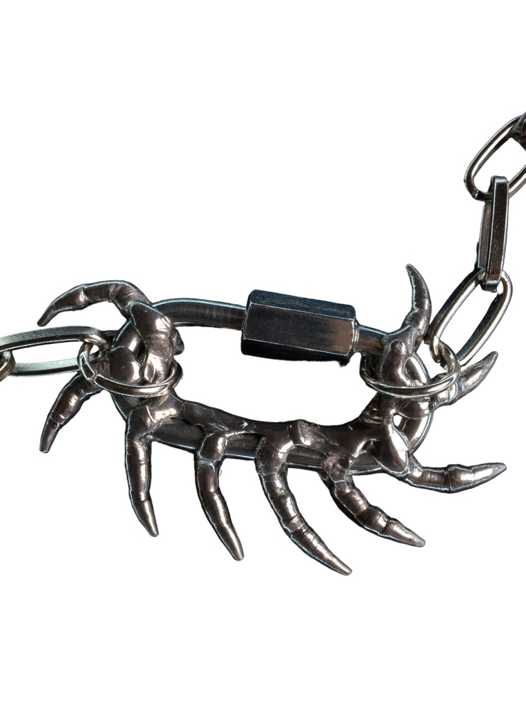 Design made of pewter (98% tin, 2% cooper) Carabiners made of steel Chain made of copper with chrome plating -