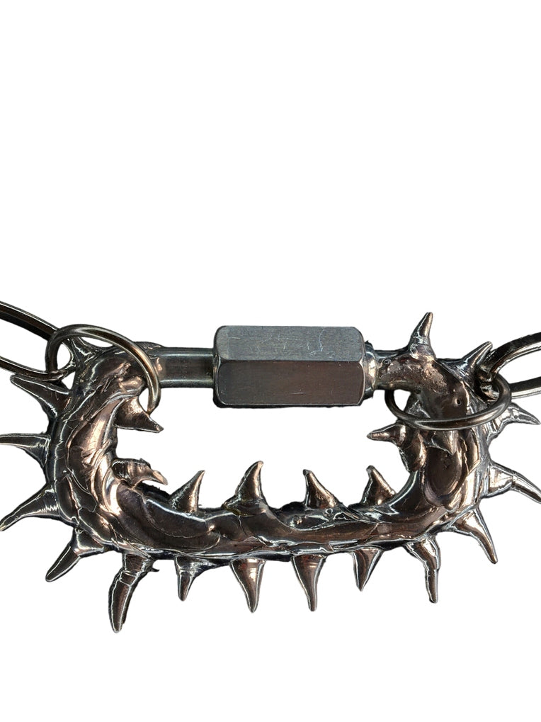 Design made of pewter (98% tin, 2% cooper) Carabiners made of steel Chain made of copper with chrome plating