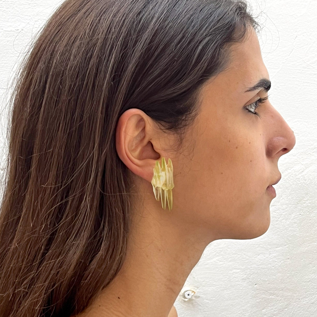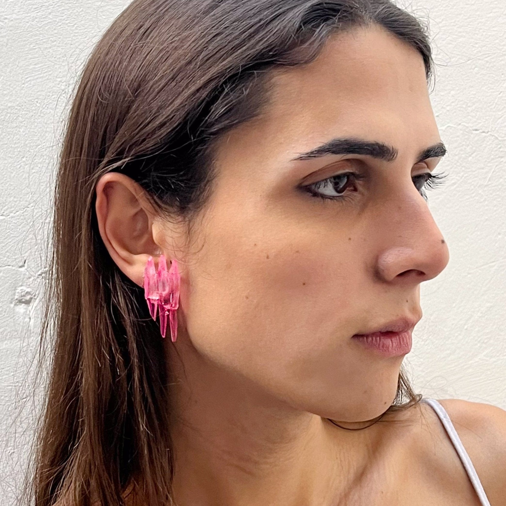Bertie Garnett is an multidisciplinary artist who’s accessories combine patterns from ancient symbolism with digital software and interfaces. Garnett is interested in the parallels between digital and traditional crafts, and looks to depict ways in which 3D rendering and printing can embody a sense of organicism and enchantment.