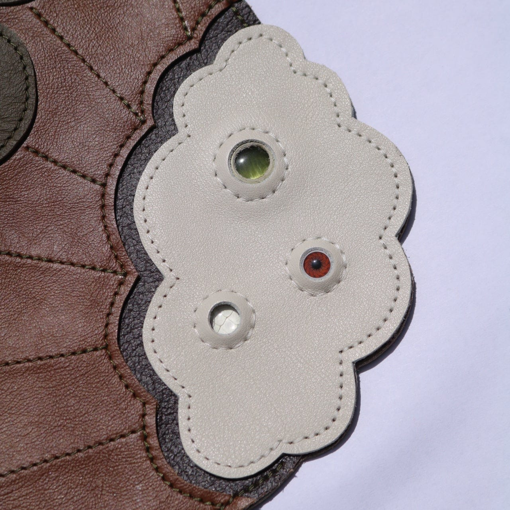 Details: scrap, genuine leather, and up-cycled leather.