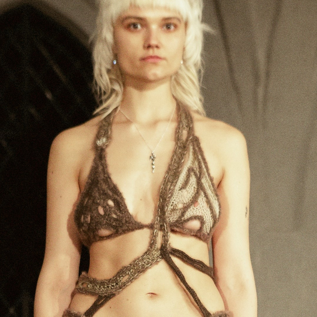 ‘excavated’ crochet bag