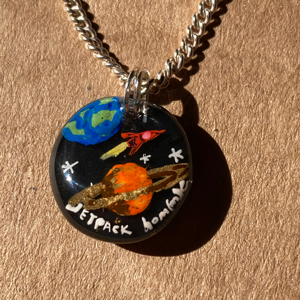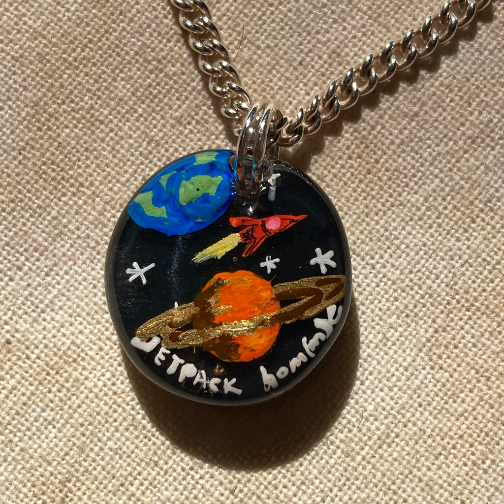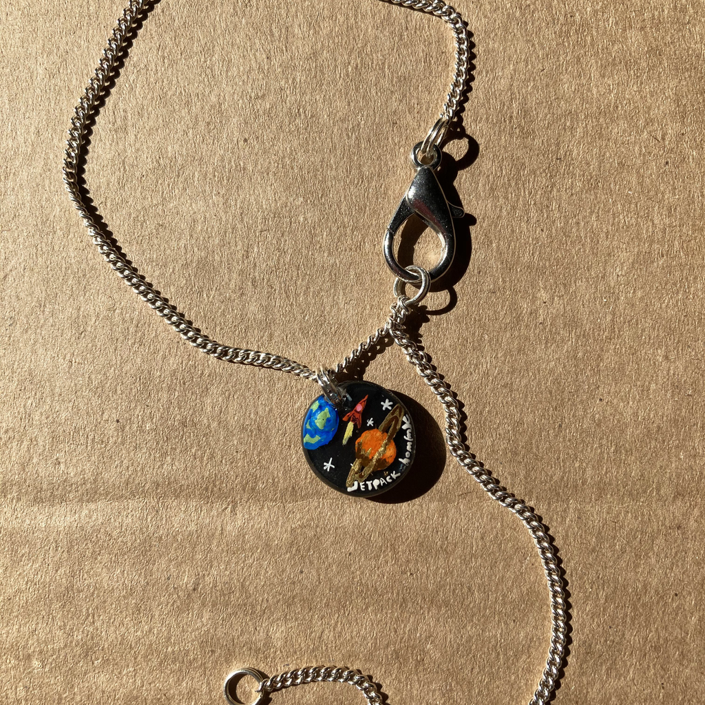 This charm is 100% handmade. Hand-painted with oil paint and coated in a hard resin. The chain, split rings, and lobster claw clasp are made of 935 Sterling Silver.