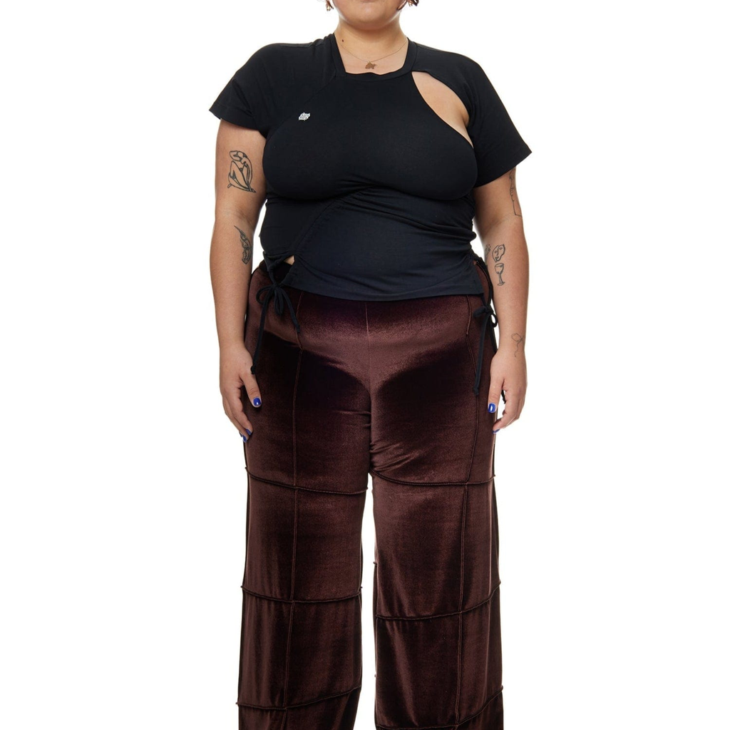 Mid rise pant with an elastic waistband. Made with the signature Spider pin tucks. This item can be custom hemmed. Please add your preferred length in "notes" at checkout. Standard inseam will be 32" if no notes are added.