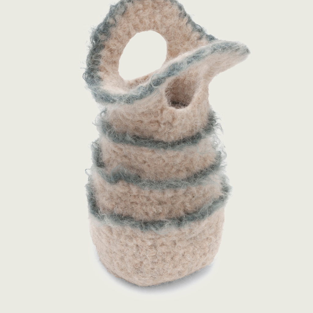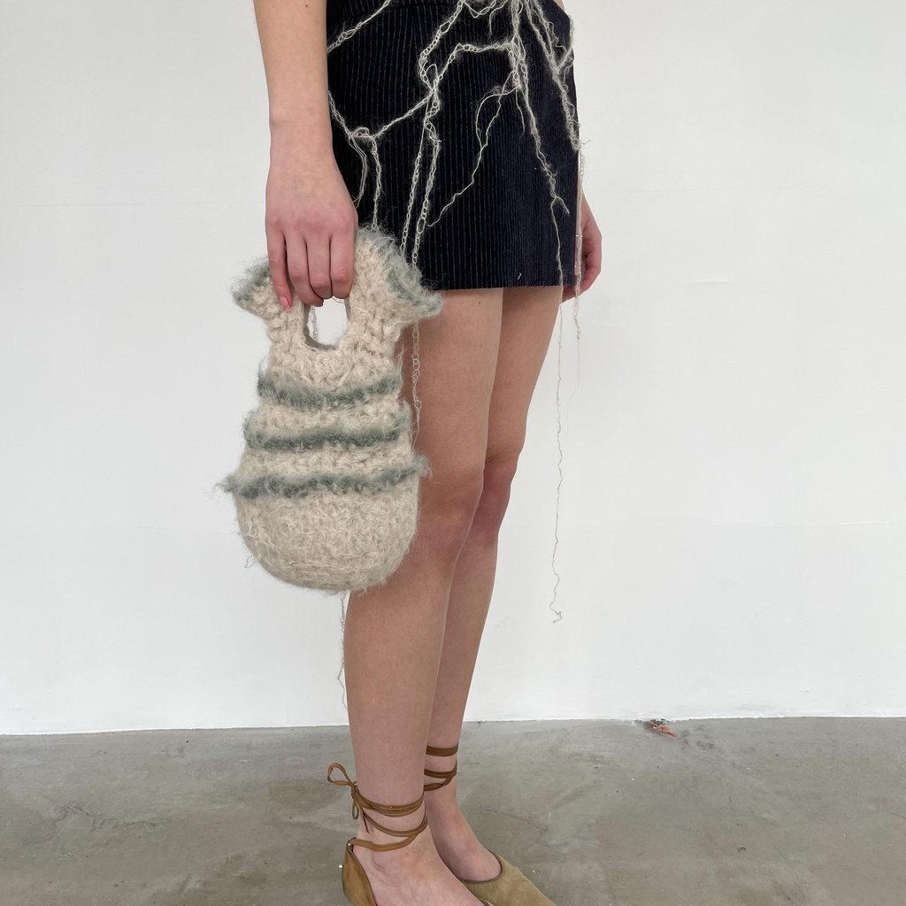 Fluffy handmade crochet bag with contrast stripes and top edge
