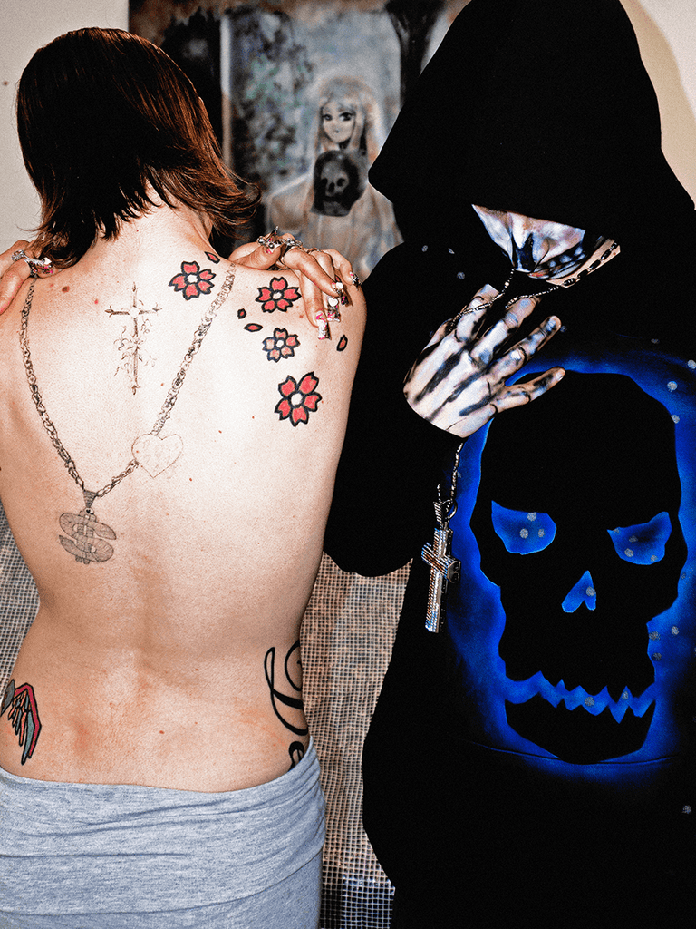 Mia Violet is a London-based artist, specialising in the adornment of clothing, objects and bodies through airbrushing. Presenting epic fantasy and cuteness, each capsule of rehashed everyday wear unlocks key iconography and characters of her world.